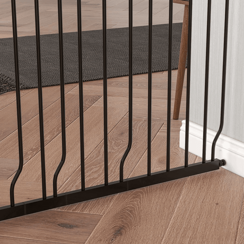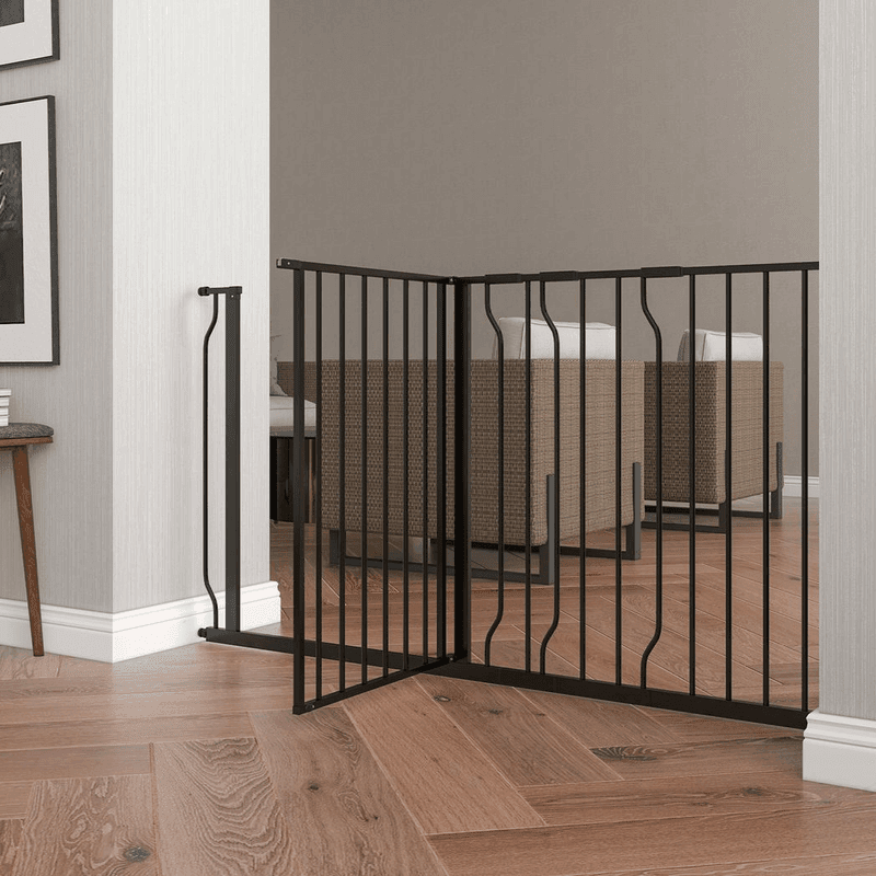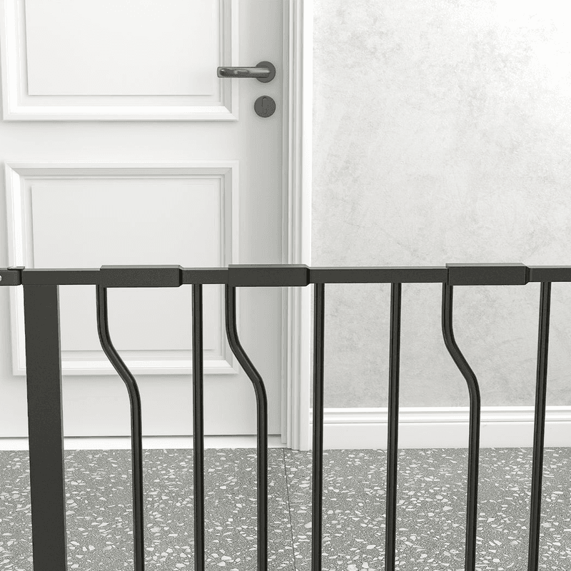 – Overall Dimensions: 76H x 75-145Wcm. Door panel width: 73cm. Opening width: 5cm. Expansion kit: 10cm, 20cm and 30cm