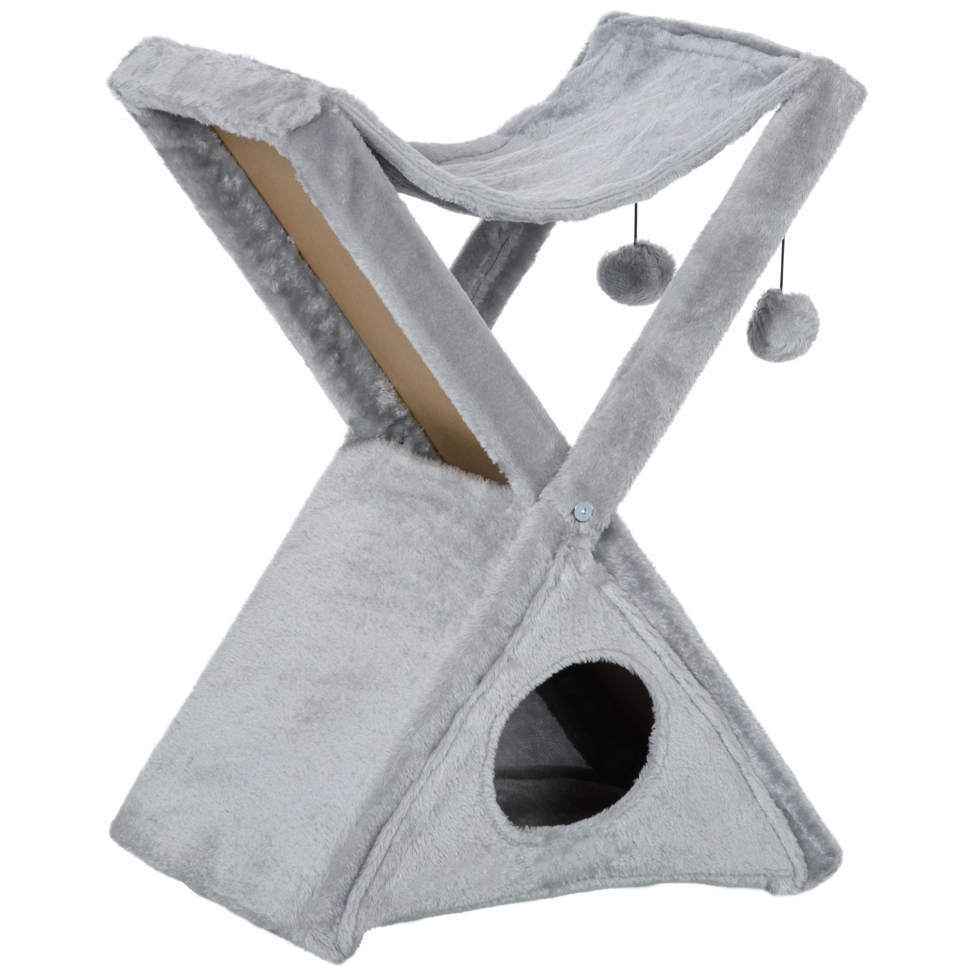 – “Plush Folding Cat Tree Play Rest Activity Tower w/ Scratching Post Grey Pawhut”