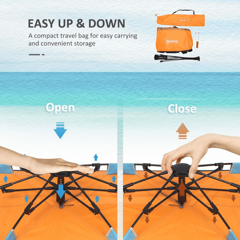POP-UP DESIGN: Beach shelter is easy to set up and take down, giving you a protective space within minutes. Easy to pack away too. Spend more time in the sun.