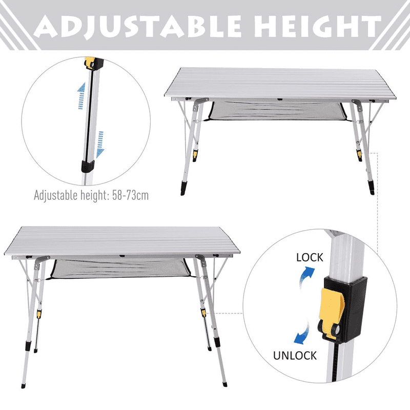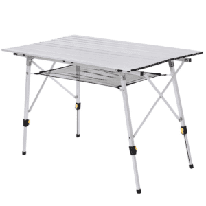 EASY PORTABLE DESIGN: Comes in two parts: the roll-up tabletop and the bottom frame. Easy to assemble and carry. Ideal for camping trips, BBQs and other outdoor adventures.