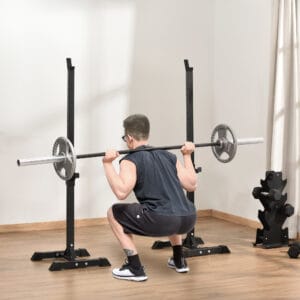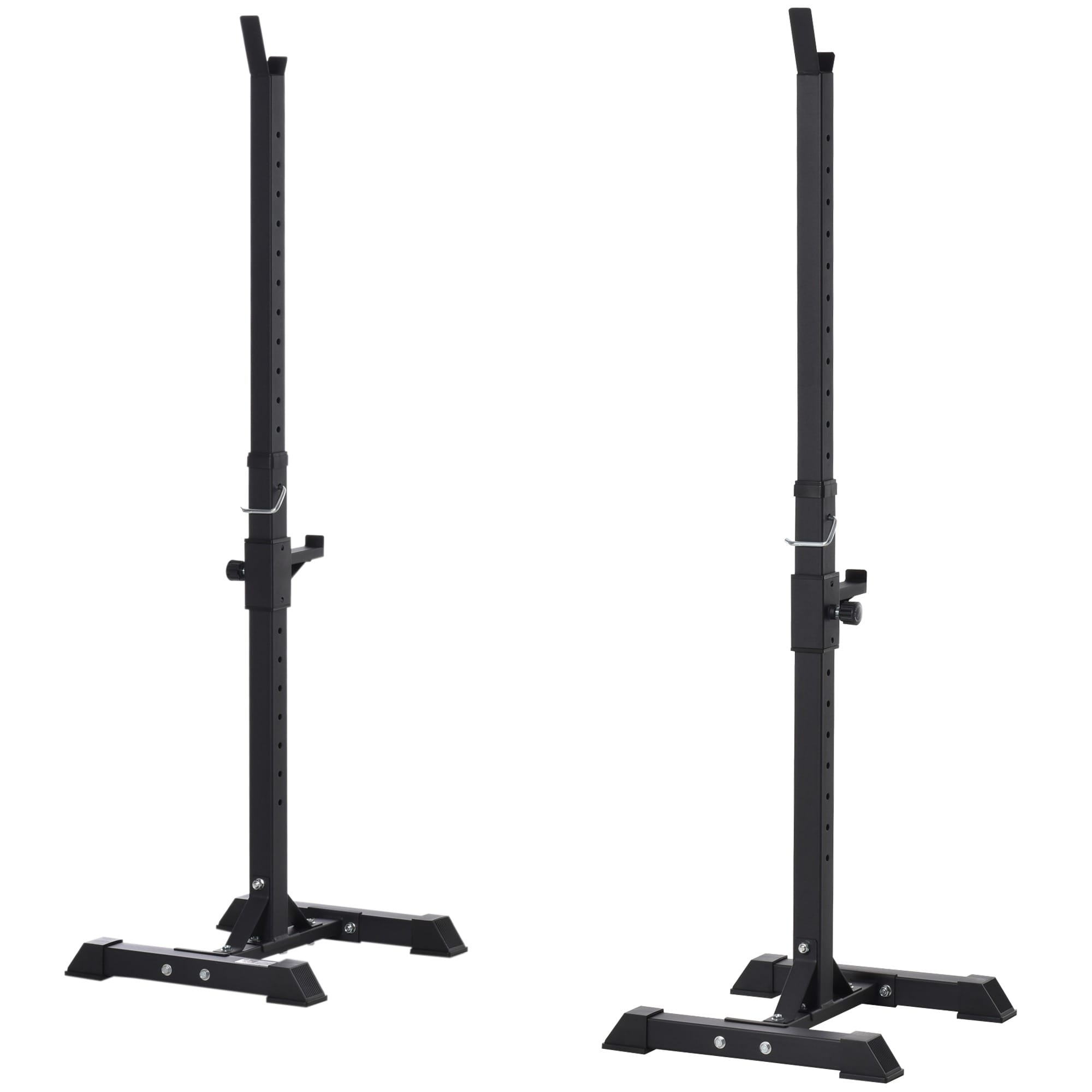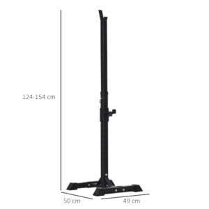 HIGH QUALITY: Barbell Squat Stand of super quality, can be placed two sets of barbells, ideal for personal training and barbell training. HEIGHT ADJUSTABLE: The squat rack with 12 adjustable level on the tube and the height can be adjusted between 124-154cm, the upper barbell bar holder can be adjust from 99-143.5cm, the lower barbell bar holder can be adjust from 31.5-76.5cm, height suitable for people of different heights.