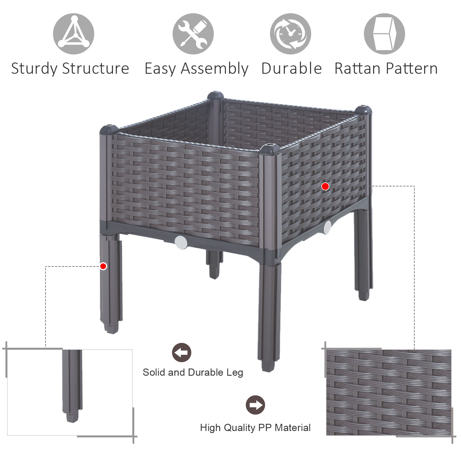 – The rattan-effect finish allows the planter box to blend in seamlessly with your other garden furniture.