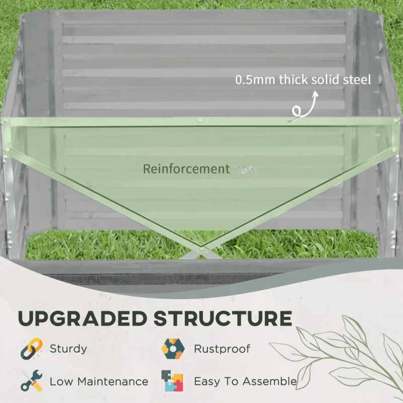 Steel structure: A tough steel garden bed, with a protective coating – shielding against mild weather and general wear.180 x 90cm size: Generous amount of room for keeping plants, flowers and more in this raised garden bed. A private growing spot, wherever.