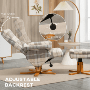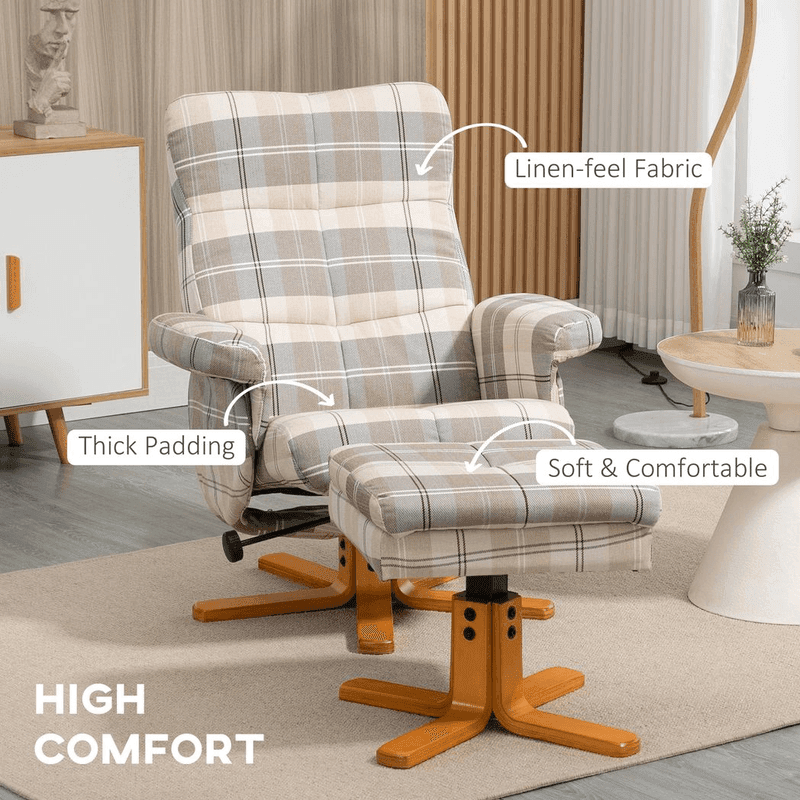 – Recliner Chair and Footstool Linen-touch Fabric Wooden Base Multicolour