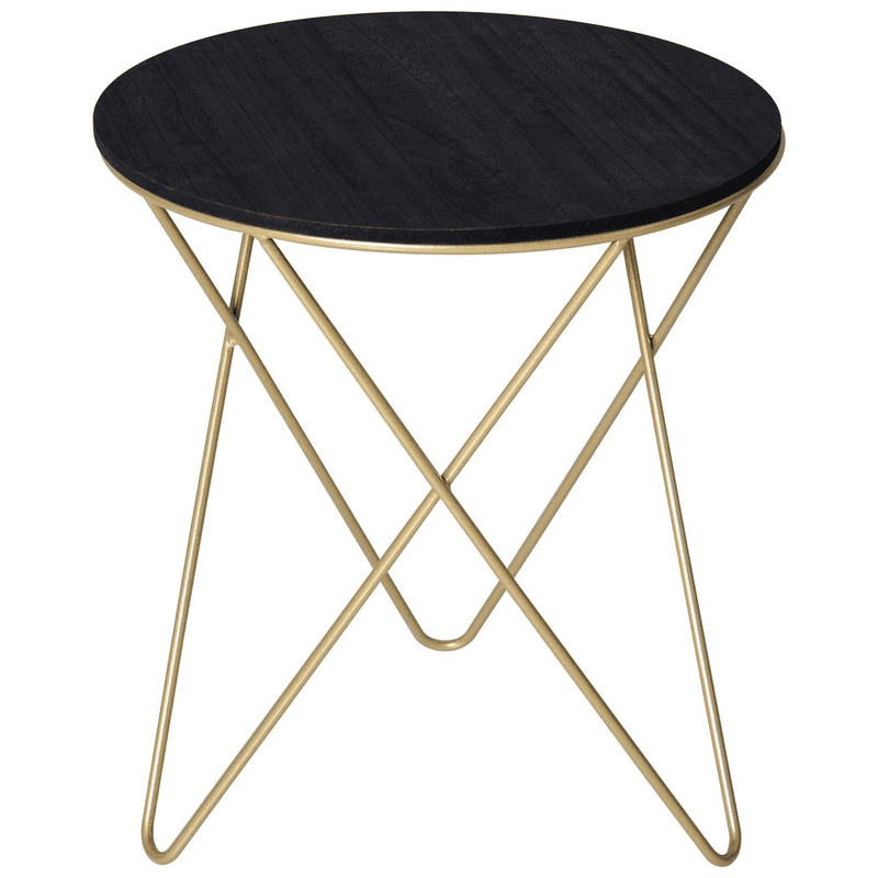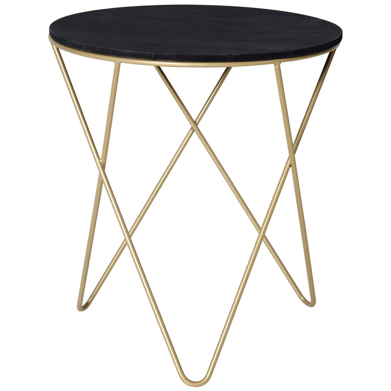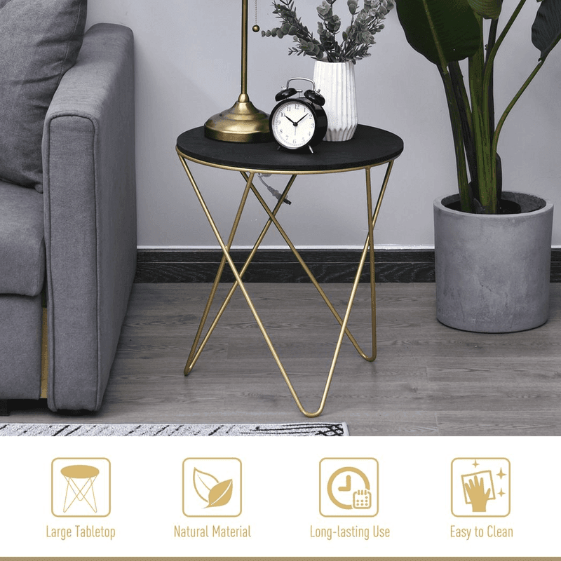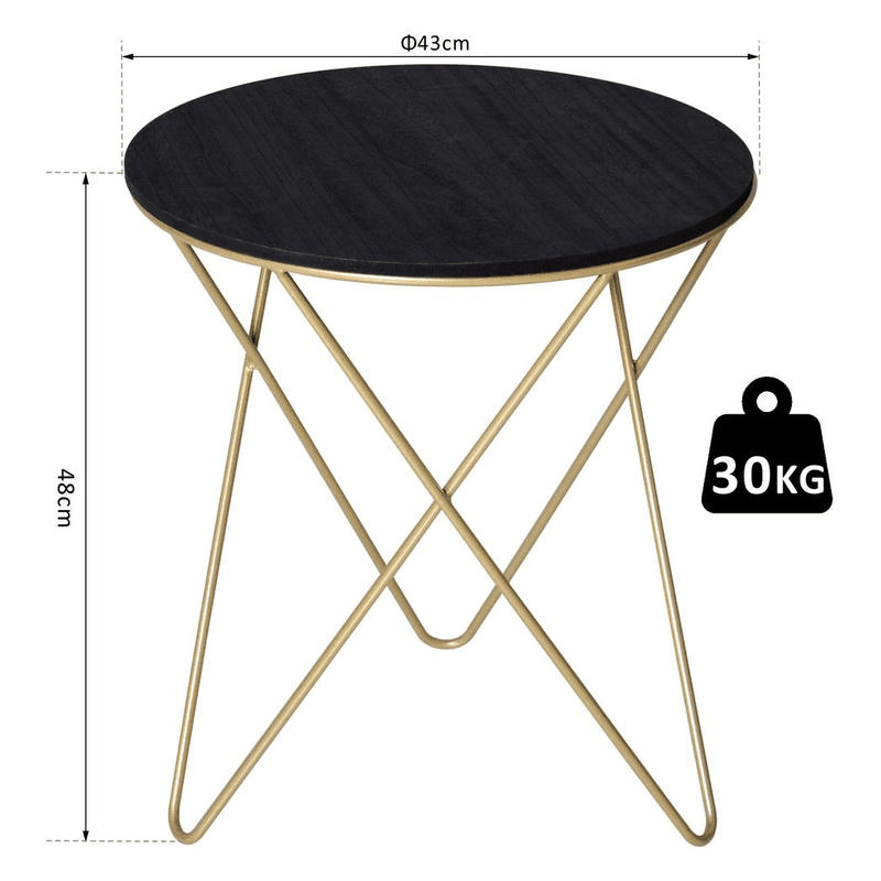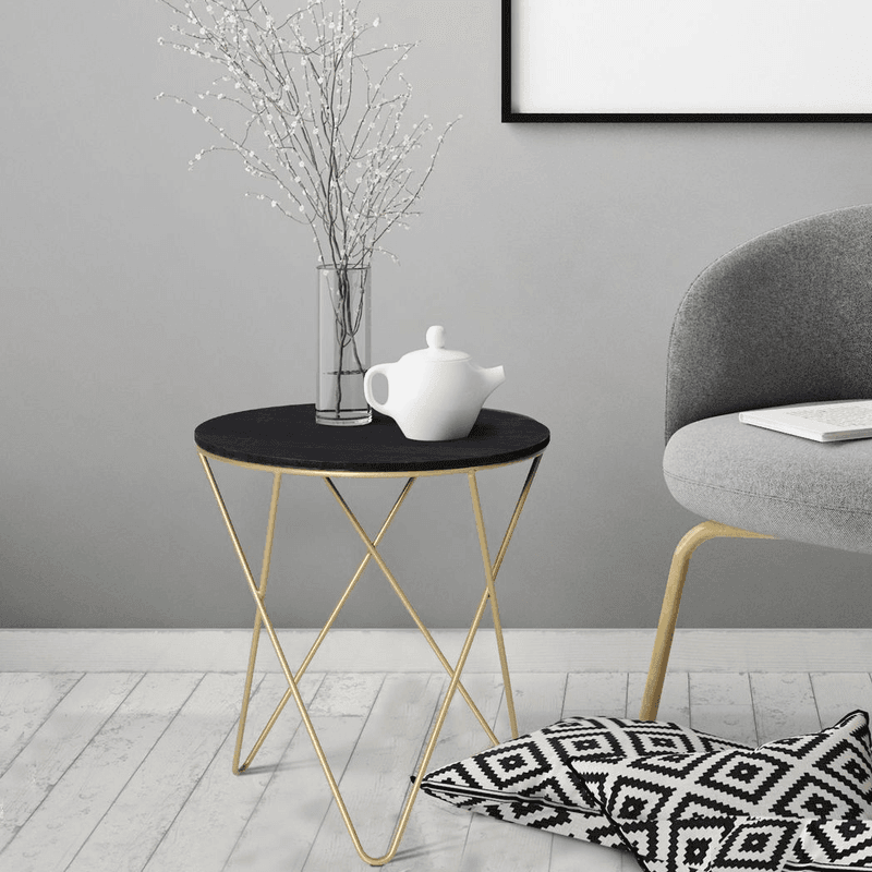 – Round Coffee Table Sofa End Side Wood Metal Bedside Table – Black Gold