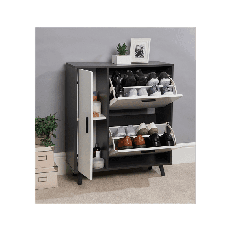This stylish shoe cabinet will look fantastic in any Bedroom, Living Room, Hallway or indeed any room at home where storage is needed. Keep your shoes looking their best and stored neatly in one place.