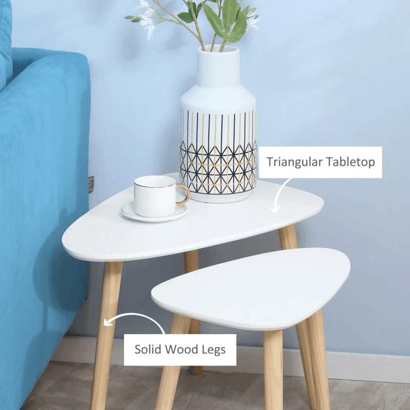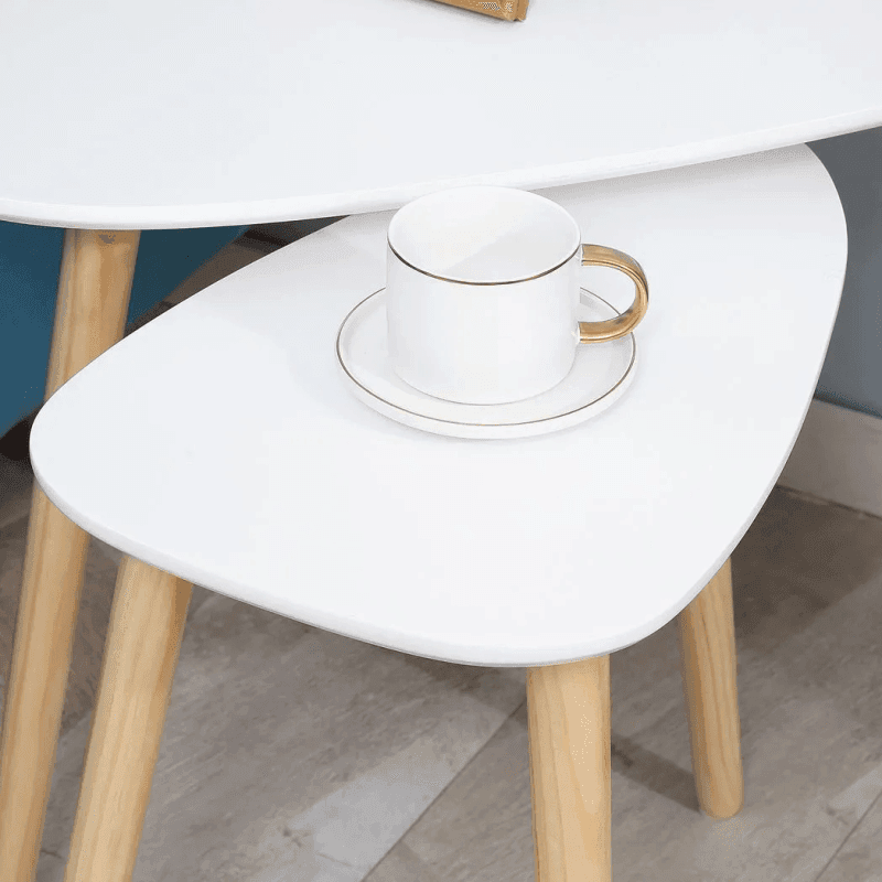 Wooden legs: Each side table is fitted with three legs, keeping these living room tables supported. Evenly spaced for balance.