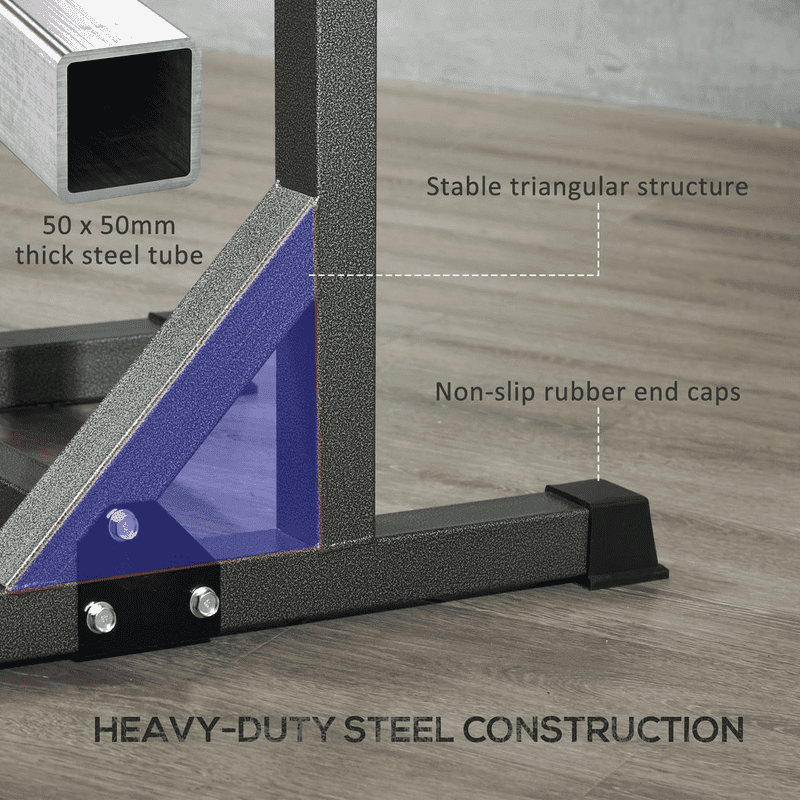 ● High-density steel poles and a firm triangular structure, ensuring it doesn’t wobble or shake when placing weights on them