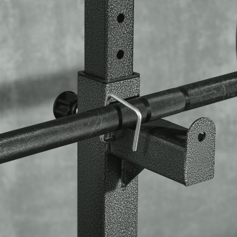● Equipped with three barbell racks