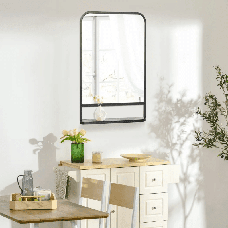 Bottom shelf: Wall mirror gives you more than just a place to see yourself and get ready – it also has a handy holding spot for keeping what you require near, close.