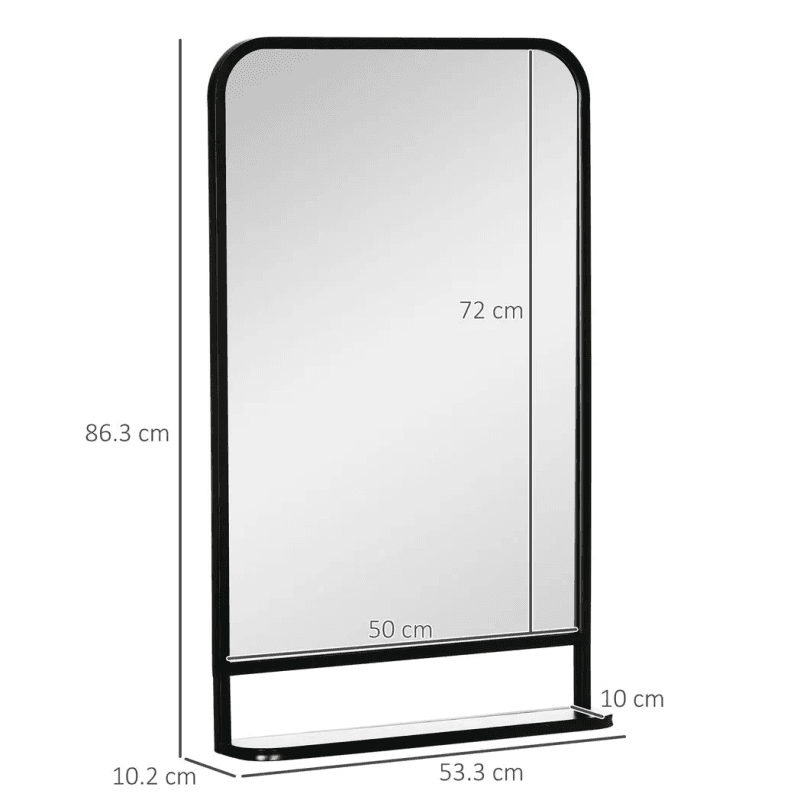 Dimensions: Mirror: 86.3H x 53.3W x 10.2D. Shelf: 53H x 10L cm.