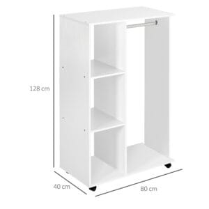 – BIG STORAGE: A long hanging area with a strong aluminium rod on one side, with three open shelves on the other side providing plenty of space for keeping all your clothes tidy and organised.