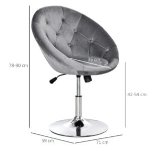 – DIMENSIONS: Overall: 78-90H x 71W x 59Dcm. Seat: 42-54H x 36Wcm. Base: 45cm.