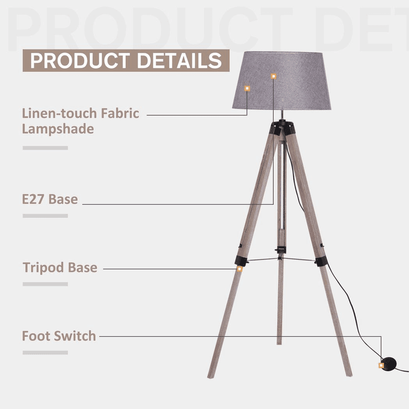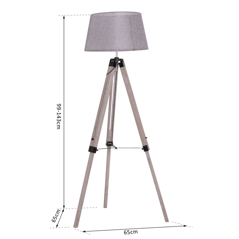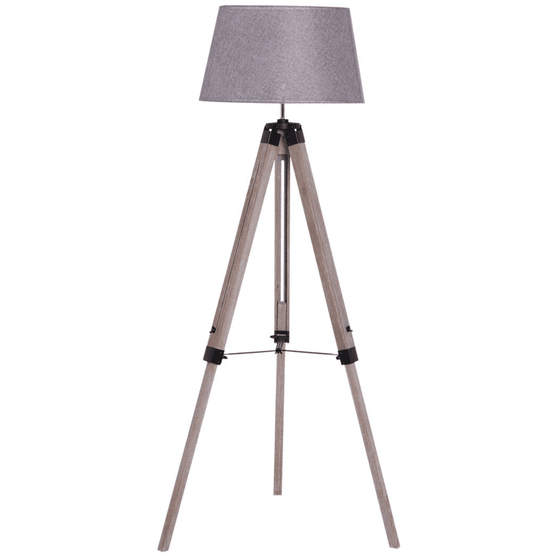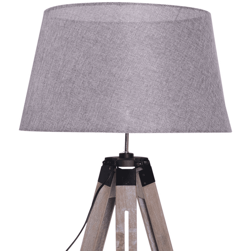 DELICATE FLOOR LAMP: 143 cm floor lamps for living room, features grey linen lamp shade with solid pine-wood tripod lamp holder, standing quietly in the corner of your house.