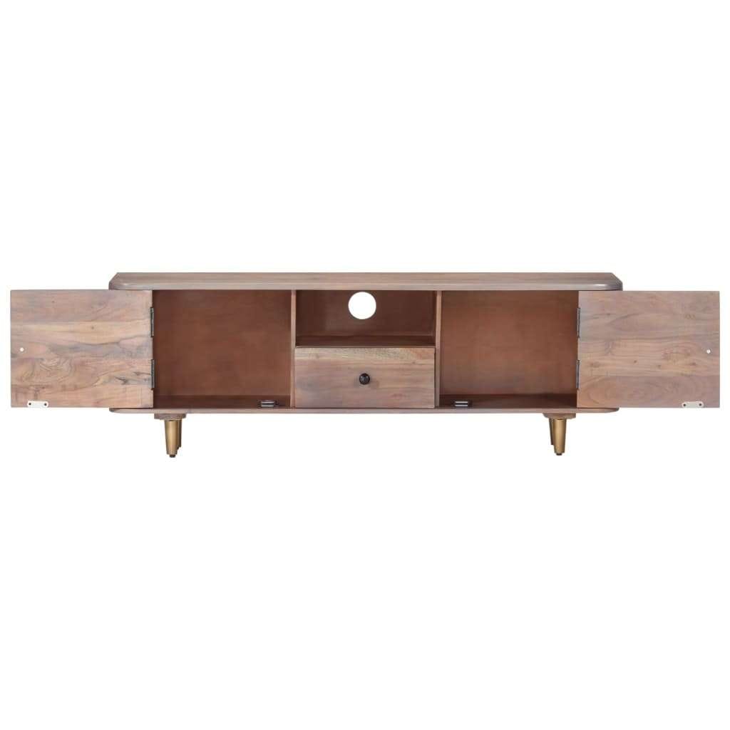 This wooden TV cabinet adds an industrial look and is suitable for your living room and bedroom. The TV stand is made of solid acacia wood, a hardwood with dense grains, making it stable and durable. The iron legs add extra stability and the sturdy top can be used to place your decorative items. The storage compartment and drawers also provide ample space for storing your multimedia appliances, books, as well as various other items. Important note: Colours and grains vary from piece to piece, making each piece unique; the delivery is random.