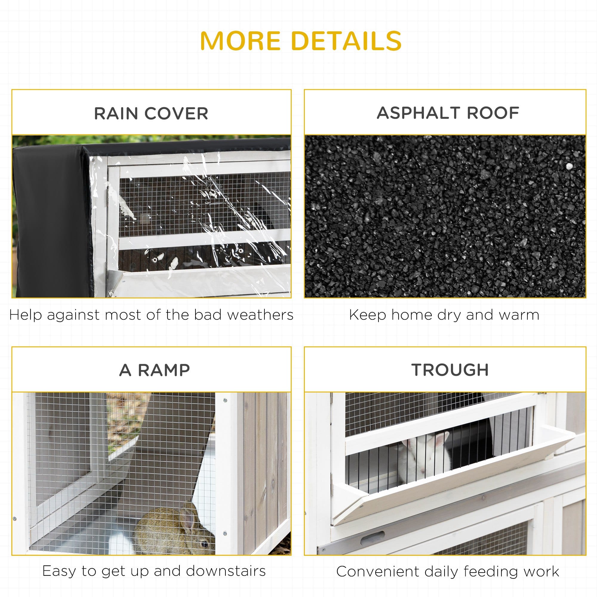 LARGE RABBIT HUTCH: Comes with two tiers and a ramp C lots of space for small pets to roam around. Both layers can be used separately. A trough at the top for daily feeding.