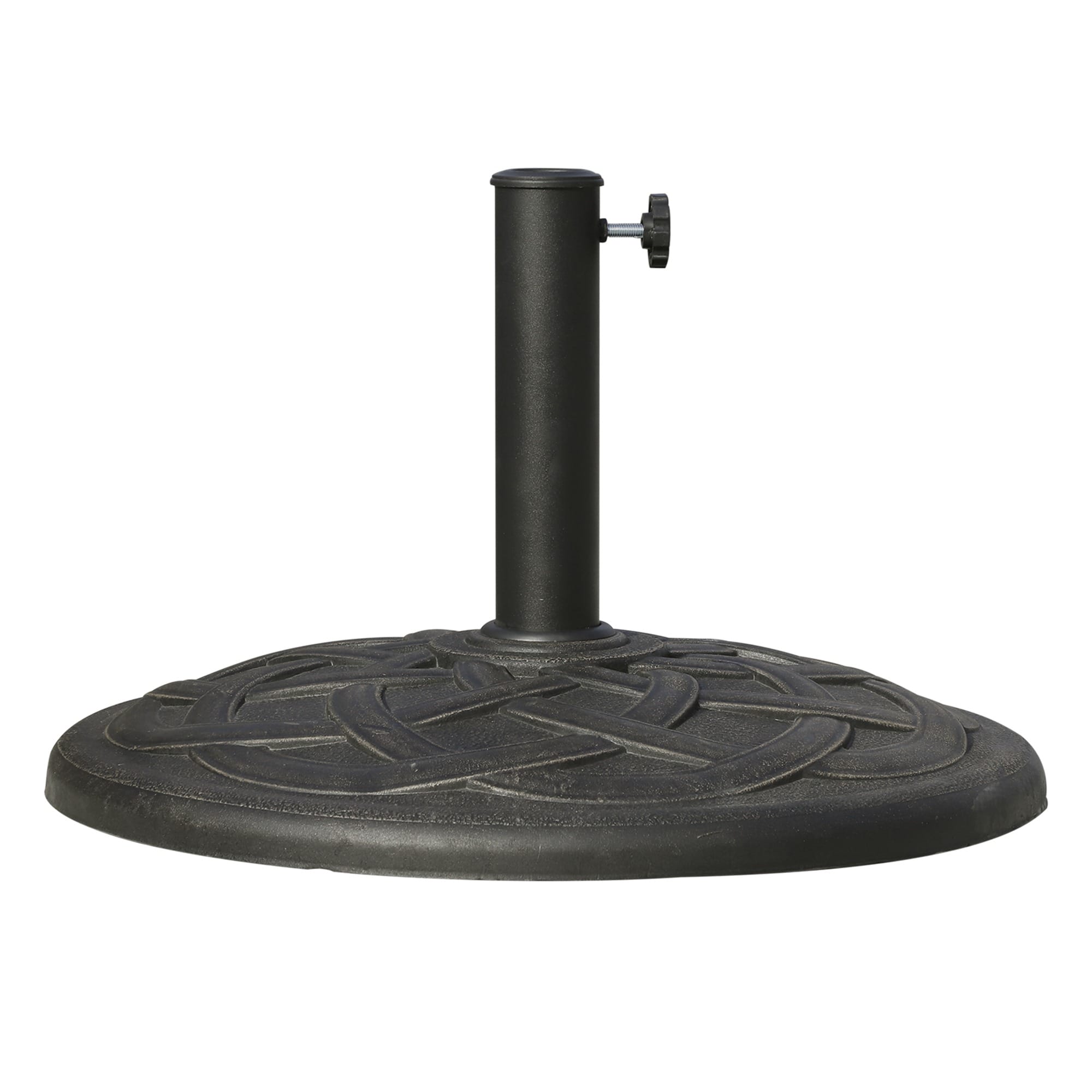 This Outsunny brand circular umbrella base stand, offers a decorative, high-end touch to your outdoor living area while holding your umbrella in place. With a suttle finish, the base is designed to add charm and elegance to most backyard patio space. Made from resin, steel and plastic, this base is rust-resistant and made to last for years.