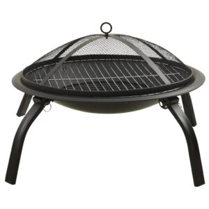 A quick and easy way to keep you warm and also whip up a feast outdoors! Bring this 2-in-1 fire pit to your home right now! The fire pit, made of steel, is excellent in absorbing and radiating heat. This fireplace features a large bowl, allowing for a large fire for you and your family to enjoy for hours. The mesh allows you to watch the burning fire, and encloses the fire for safety as well as preventing sparks and debris from flying out. Additionally, there is a convenient ring in the mesh cover so that you can carry it easily. The poker can be used for both removing the mesh cover and rearranging the logs. With the included cooking grid, you can even have a barbecue. What’s more, the legs can be folded for easy transportation. Important notes: It can only be used outdoors. To avoid injuries and burns, do not touch the product when there is still burning wood inside or shortly after it.