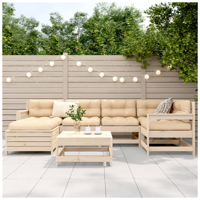 This wooden garden lounge set with slatted design will make a great addition to your garden, patio, or terrace for enjoying a cosy time with your family or friends. Sturdy and durable material: Solid pinewood is known for its strength and durability. Its straight grains and distinctive knots contribute to its rustic charm. Well-ventilated and pooling prevention: The slatted design promotes optimal airflow and effectively prevents water pooling, ensuring a dry and comfortable seat. Versatile usage: The garden footstool can not only be used to sit or relax your feet, but it can also be used as a coffee table to hold your drinks, food, and other decorations. Modular design: This outdoor furniture set has a modular design, making it completely flexible and easy to move around, so you can create a customised outdoor furniture arrangement. Good to know: To make sure your outdoor furniture stays beautiful, we recommend protecting it with a waterproof cover.