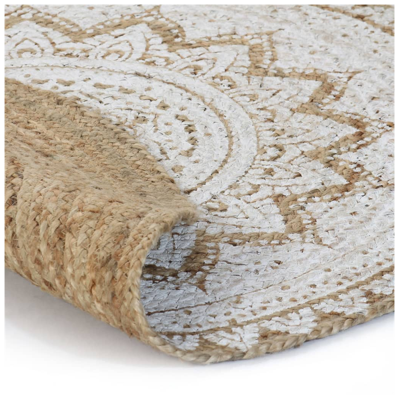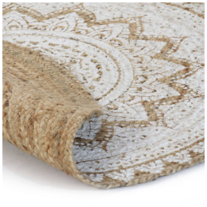 Give your interior a natural touch with this braided jute area rug! It is the perfect choice for decorating your room while protecting your floors. Durable material: The area rug is made of 100% jute. Jute is a very durable and naturally strong material and low maintenance. Handmade rug: The round carpet is handwoven by skilled artisans with exceptional craftsmanship and with its attractive texture and beautiful Mandala print, it will fit perfectly into your home decor. Versatile rug: The mat is versatile enough to be used alone or as a base for layering. The perfect rug to polish off your living room, bedroom or foyer. Note: Each rug is unique; variations in colour and design may occur due to the handmade nature of the product. The delivery is random, ensuring the exclusivity and individuality of your product. The rug is folded in a carton for easy transportation. Please allow the product some time to become perfectly straight and flat.