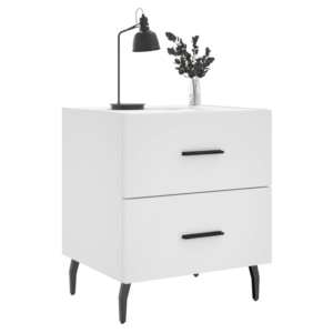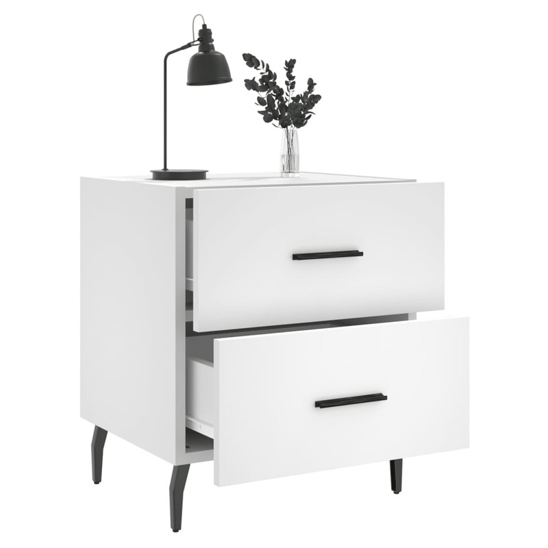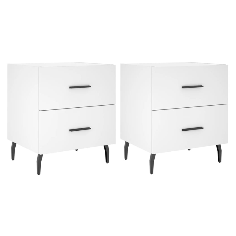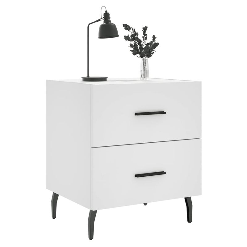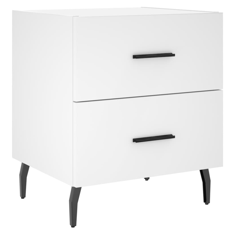 Introduce an air of modern charm to your interior with these bedside cabinets! Durable material: The engineered wood is of exceptional quality with smooth surface and also features strength, stability and resistance to moisture. Spacious storage: The bedside cabinet has drawers, providing spacious storage space to keep your books, multimedia appliances and other items within reach. Displaying function: You can also place your favourite photos, decorations or flowers on top of the side cabinet to enrich your life. Metal feet: The metal feet add a calm style to your interior while ensuring stability.