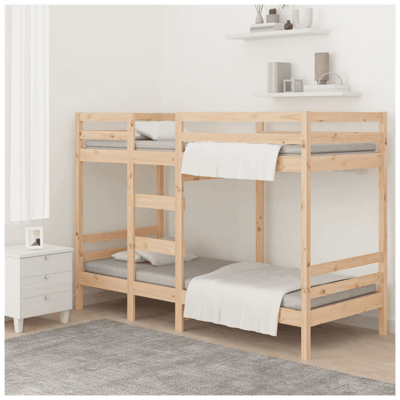 This wooden bunk bed is elegant and functional, making it a perfect addition to any room with limited space. Solid pine wood: Solid pine wood is a beautiful natural material. Pine wood has a straight grain, and the knots give the material its signature, rustic look. Safe design: The loft bed is designed with safety in mind. It features guardrails to keep the user from rolling out while sleeping. Suitable for limited space: The solid wood bunk bed makes an excellent choice for any room with limited space. It provides two individual beds with a compact design. Note: The delivery includes bed frames only. The mattresses are not included. You can check our shop for matching mattresses. The mattress thickness should not exceed 11 cm. And we do not recommend soft mattress for safety reason. The upper bed is not suitable for children under 6 years old. Each product comes with an assembly manual in the box for easy assembly.