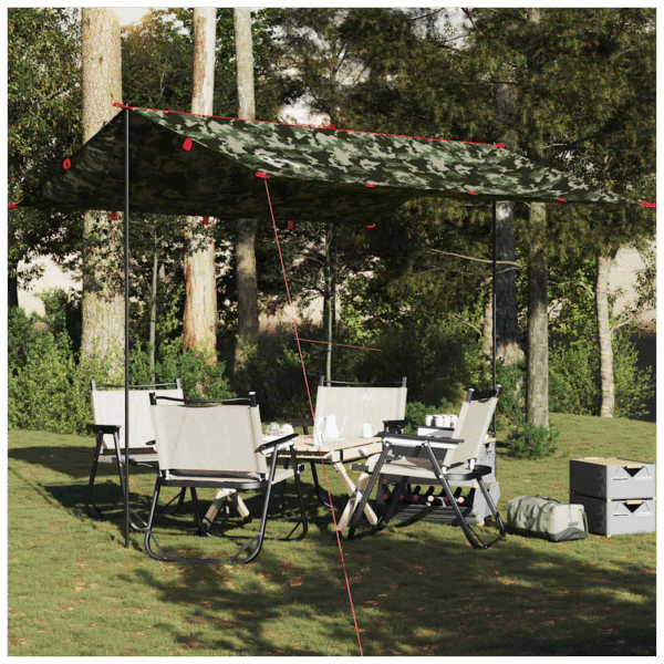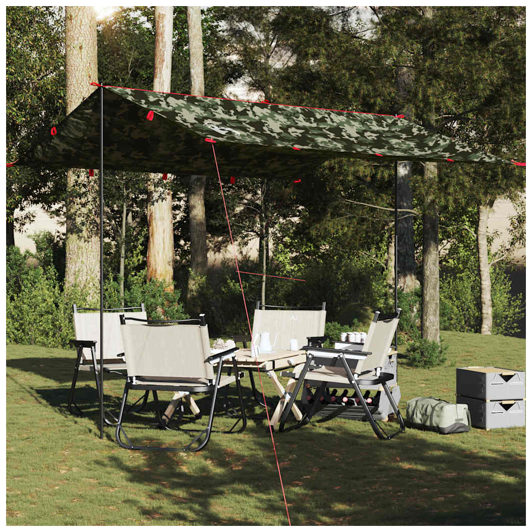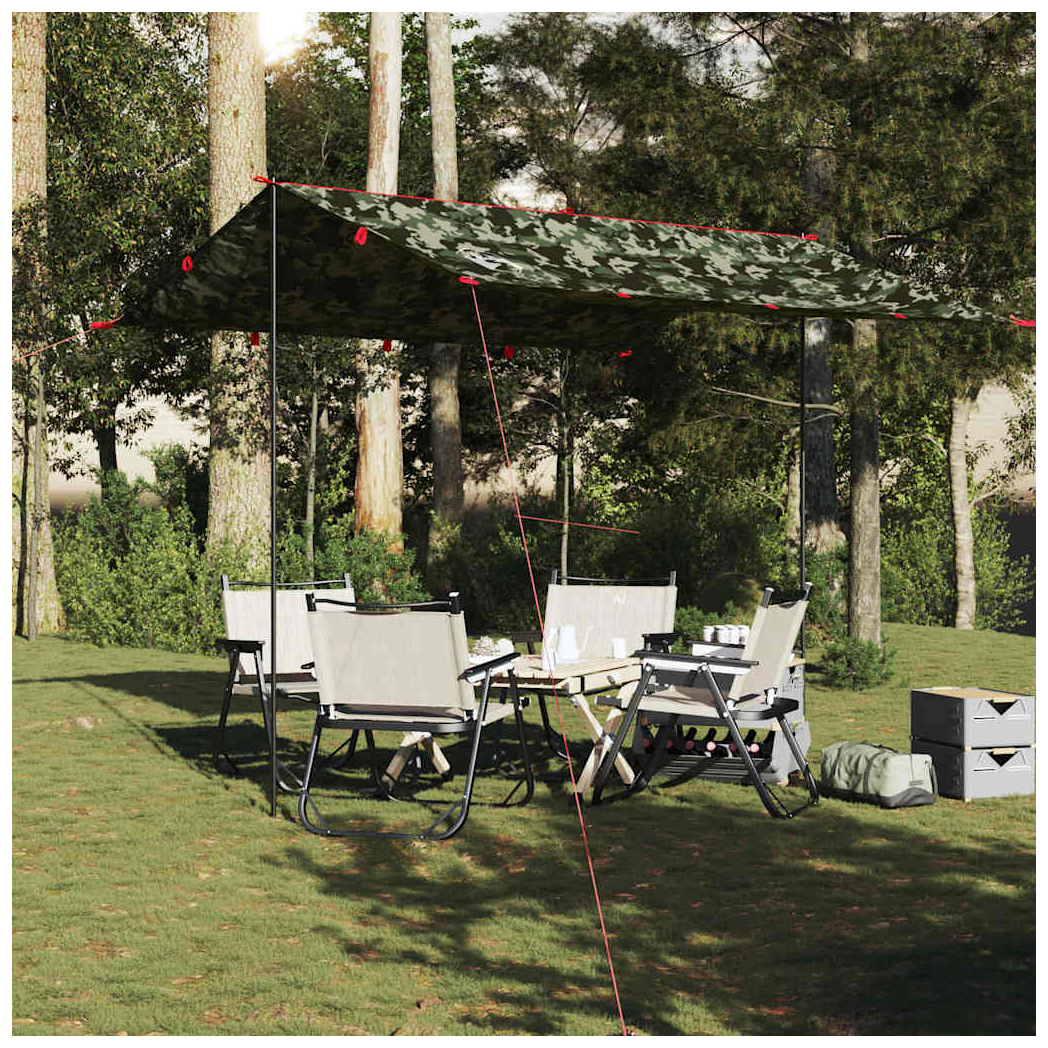 This camping tarp is an irreplaceable companion for your outdoor and trekking tours. Durable taffeta material: This tarp is made from taffeta fabric with a PU coating, is waterproof and wind resistant. Also, the taped seams effectively prevent rainwater infiltration, helping maintain a dry and comfortable interior. Multi-functional: This tarp is versatile. It can serve as a camping tarp or a ground sheet, thanks to the grommets at each corner. Lightweight and portable: The foldable and lightweight design allows you to easily pack the tent tarp and store it in the included carry bag for easy transport. Warning: Keep all flame and heat sources away from this product fabric.