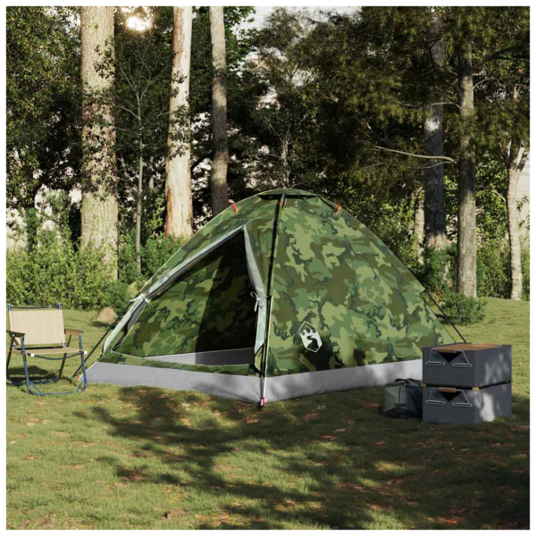 This camping tent with a modern look protects you from the unpleasant weather and provides a comfortable place for anywhere adventures. All-round waterproof design: This camping tent, made from polyester with a PU coating, is waterproof and wind resistant. The taped seams effectively prevent rainwater infiltration, while the heavy-duty ground sheet helps maintain a dry and comfortable interior. Good ventilation: This camping tent features an air vent to maintain a fresh and cool interior. Easy access: The zippered door allows for easy access. You can roll it up and secure it with the door toggles. It also promotes airflow and provides ample natural light. Extra storage space: The storage pocket is convenient for keeping your phone, keys, or other small items organised and easily accessible. Lightweight and portable: The foldable and lightweight design allows you to easily pack the tent and store it in the included carry bag for easy transport. Warning: Keep all flame and heat sources away from this product fabric.