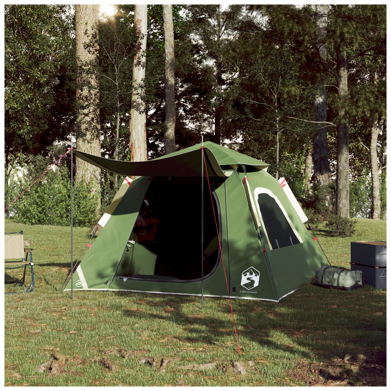 This camping tent with a modern look protects you from the unpleasant weather and provides a comfortable place for anywhere adventures. All-round waterproof design: This camping tent, made from polyester with a PU coating, is waterproof and wind resistant. The taped seams effectively prevent rainwater infiltration, while the heavy-duty ground sheet helps maintain a dry and comfortable interior. Quick-release system: Set up the tent effortlessly with the quick-release system! Lay the tent down, extend the pre-assembled poles until they lock into place, and you’re all set!King poles included for sun canopy: This camping tent includes king poles that make it a breeze to prop up the entrance door, creating a sun canopy. Now you can relish the great outdoors while staying shaded! Detachable rainfly: The detachable rainfly can be attached to the tent’s top for weather protection and privacy. Lightweight and portable: The foldable and lightweight design allows you to easily pack the tent and store it in the included carry bag for easy transport. Warning: Keep all flame and heat sources away from this product fabric.