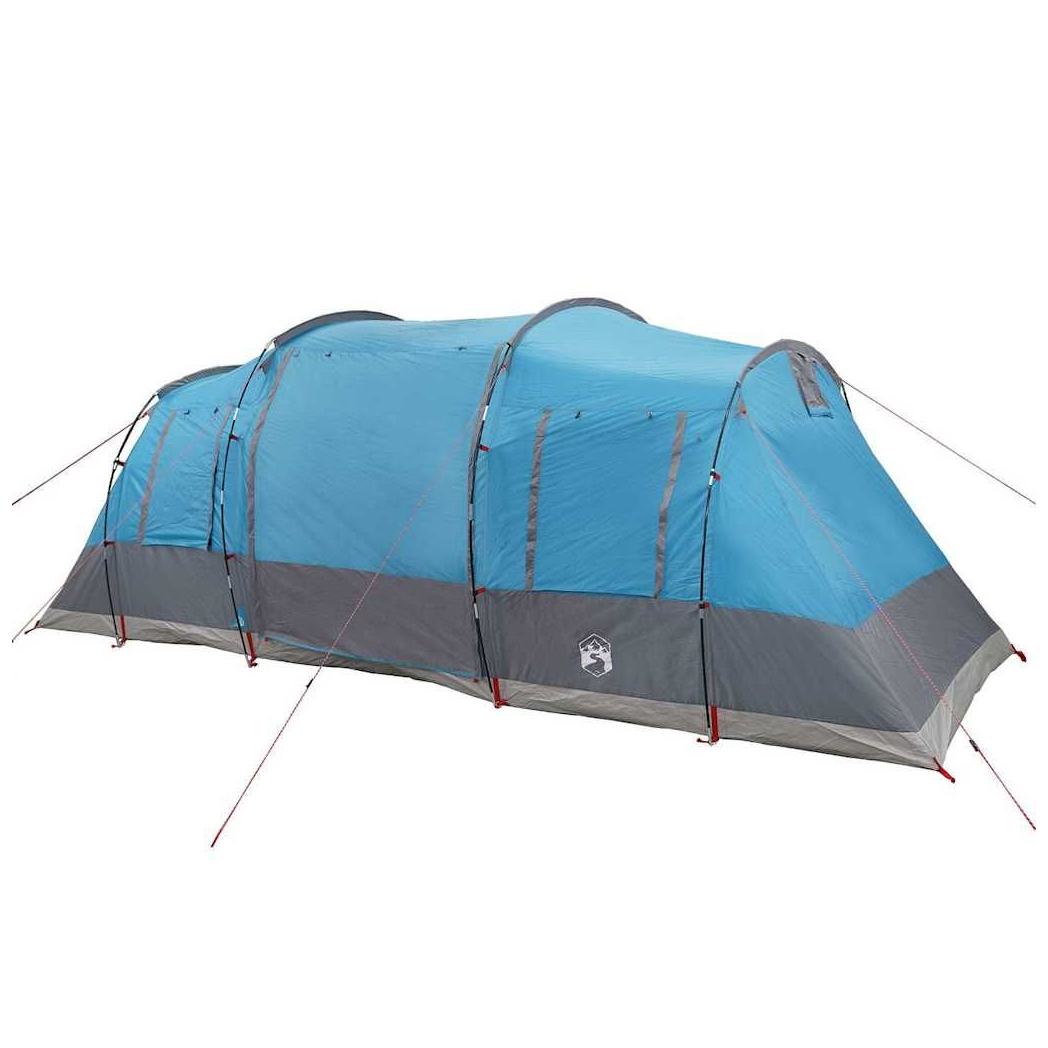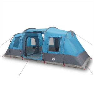 This camping tent with a modern look protects you from the unpleasant weather and provides a comfortable place for anywhere adventures. All-round waterproof design: This camping tent, made from polyester with a PU coating, is waterproof and wind resistant. The taped seams effectively prevent rainwater infiltration, while the heavy-duty ground sheet helps maintain a dry and comfortable interior. Easy setup and takedown: Setting up and taking down the tent is a breeze thanks to the highly flexible and lightweight fibreglass poles and the convenient pin-and-ring connection system. Ample space: The tent features a two-room structure where the two rooms operate independently without interfering with each other. Convenient electrical cord access: The E-Port allows you to easily connect an extension cord from an external power source to your tent. Lightweight and portable: The foldable and lightweight design allows you to easily pack the tent and store it in the included carry bag for easy transport. Warning: Keep all flame and heat sources away from this product fabric.