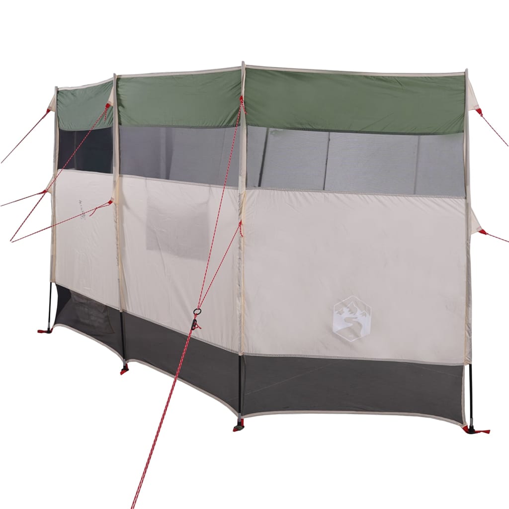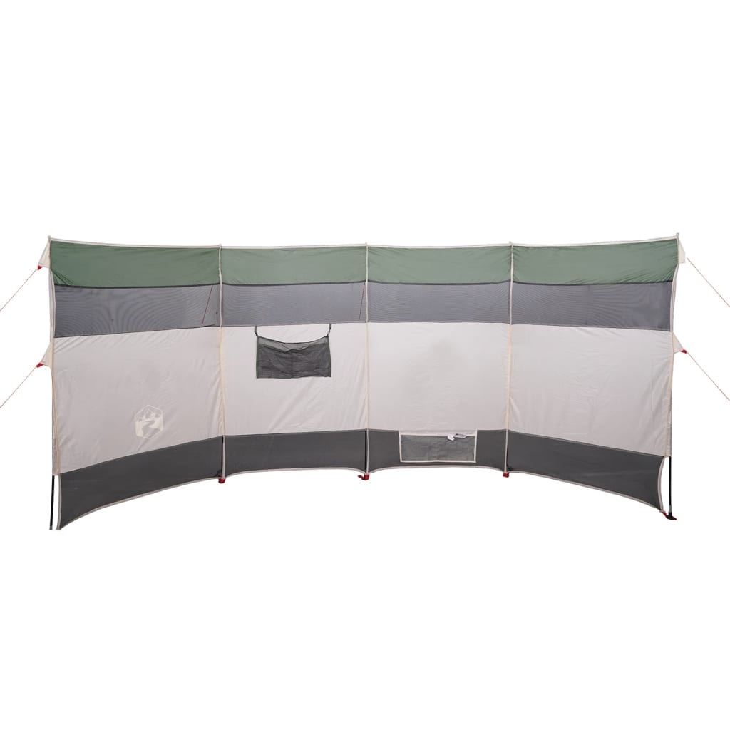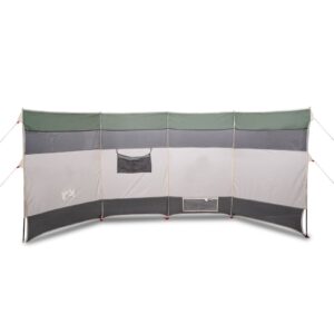 This camping windbreak is a portable barrier that helps protect against strong winds and creates a more comfortable outdoor space. All-round waterproof design: This camping windbreaker, made from polyester with a PU coating, is waterproof and wind resistant. Multi-functional: The wind fence has a mesh window on each panel. Although the windows provide a great view of your surroundings, they’re positioned at a height that helps to maintain your privacy. Stable and safe: Metal stakes and guy ropes provide secure anchoring for the camping fence, ensuring stability even on windy days at the beach or campsite. Easy setup and takedown: Setting up and taking down the beach windbreak is a breeze thanks to the highly flexible and lightweight fibreglass poles and the convenient pin-and-ring connection system. Warning: Keep all flame and heat sources away from this product fabric.