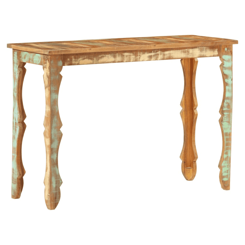 This antique-style wooden console table is a timeless living accessory for your home. Its solid wood top provides a stable and secure surface for placing your glasses, vases, fruits or ornaments. This console table is made from reclaimed wood, which means that every piece of furniture is unique and slightly different from each other. The furniture made from reclaimed wood has characteristics of different woods like teakwood, acacia, mango wood, etc. Reclaimed wood is solid, stable, durable, and beautiful. The nail holes or clear-faced grains bring their history with them and invite another generation to permeate them with their own. Keeping this piece of furniture at home will show your concept of resource conservation, environment protection and sustainable development. Pure handmade craftsmanship adds the vintage spectacular style to the console table and feasts you with exotic flavour. Every process of recombining, polishing, painting and waxing is prepared with great attention. The antique console table will surely be a perfect addition to your home! Our console table is easy to assemble. Important note: Colours vary from piece to piece, making each of our console tables unique. The delivery is random, ensuring the exclusivity and individuality of your product.