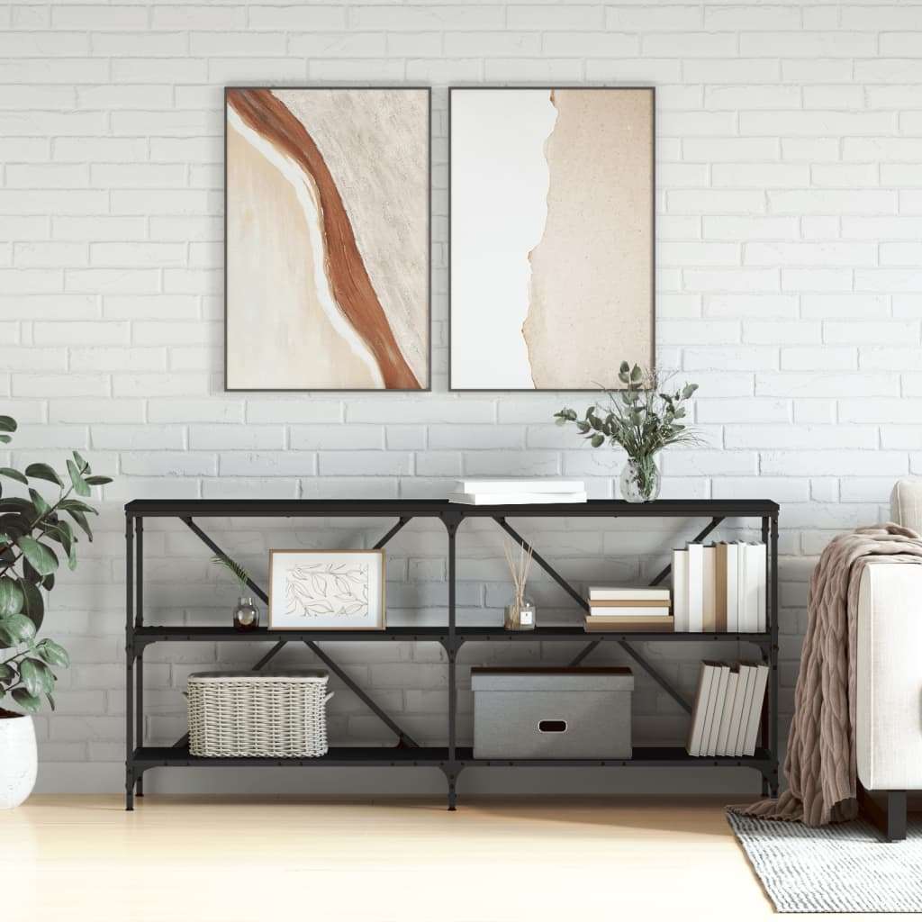 Add a touch of elegance to your entryway, living room, or hallway with this stylish console table. Durable material: The hall table is made of engineered wood. The engineered wood is of exceptional quality with smooth surface and also features strength, stability and resistance to moisture. Sturdy frame: The iron frame ensures sturdiness and stability. And the back has double X-frame crossbars for added stability, so you don’t have to worry about wobbling on the floor. Ample storage space: The sofa table offers ample storage space for keeping your daily essentials well organised and within reach. Sturdy tabletop: The sturdy tabletop of the hallway table is perfect for placing your framed photos, potted plants, and other decorative items. Adjustable feet: Four adjustable feet with plastic pads keep the side table balanced on uneven ground and increase stability. Warning: To prevent it being overturned, this product must be used with the provided wall attachment device.