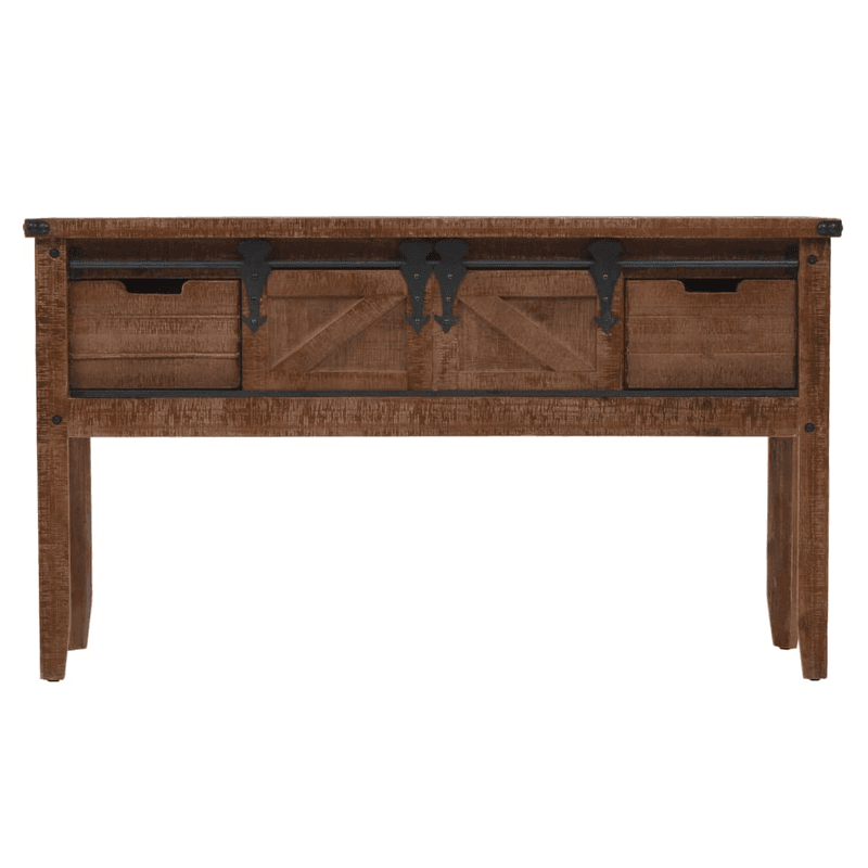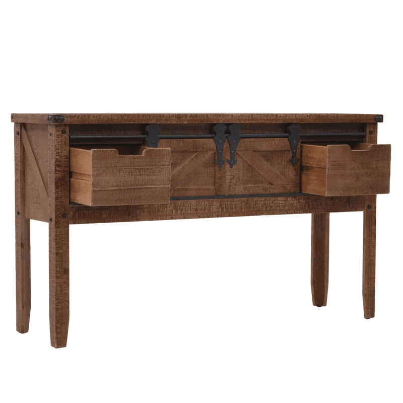 The sturdy top is ideal for displaying decorative items like vases, photo albums, or potted plants, or for keeping snacks and drinks. The console table has ample space for keeping your various items neatly organised. The unique sliding track design helps the door to easily open and close and also adds to the table’s vintage and industrial style. This console table is easy to assemble.