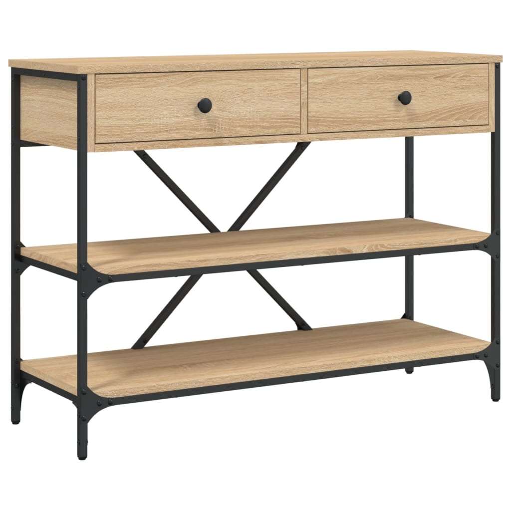 This classic console table will make a practical and decorative addition to your home décor. Durable material: The engineered wood is of exceptional quality with smooth surface and also features strength, stability and resistance to moisture. Sturdy frame: The sofa table is constructed with a robust steel frame. Steel is an exceptionally hard and strong material. It offers sturdiness and stability. Ample storage space: This practical hall table has 2 drawers and 2 bottom shelves, providing ample space for keeping your books, plants, storage boxes, decorations, etc. Displaying function: You can also place your favourite photos, decorations, or flowers on top of the side table to enrich your life. Warning: To prevent it being overturned, this product must be used with the provided wall attachment device.