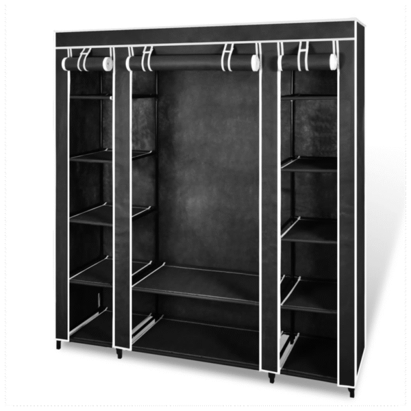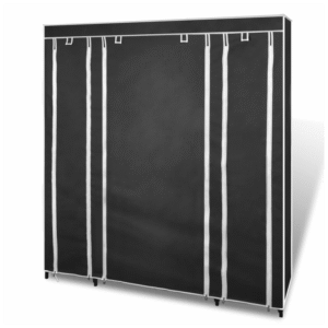 This portable cabinet is designed to protect your clothes and shoes from dust and dirt whether in the basement, children’s room, bedroom, in the attic or while camping. In this cabinet, several compartments and rods are available depending on various features, with the rolled up cover attached with hook and loop fasteners, and the zippers to open and close the cover easily. The collapsible closet is made of durable non-woven fabric and moisture-resistant iron tubes, making it timeproof, space-saving and easy to assemble. Please rotate the iron tube slowly into the connector, instead of pushing the iron pipe directly inwards into the joint while connecting the iron pipes and plastic fittings.