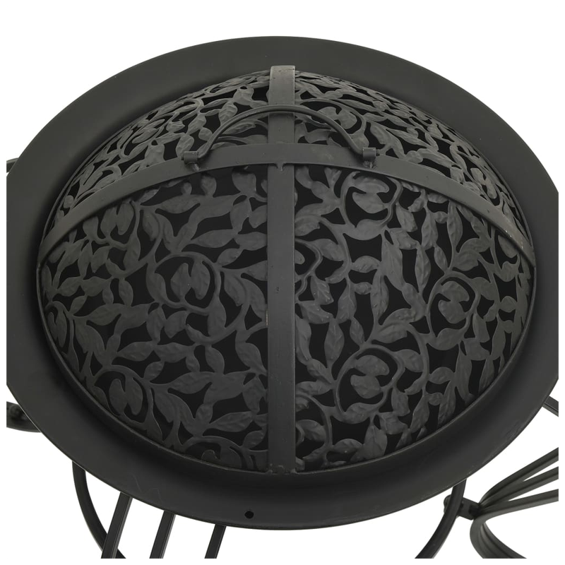 This fire pit will make a decorative and atmospheric addition to your garden or patio, while also keeping you warm when it gets colder in the evening. Made of steel, the fire pit is excellent in absorbing and radiating heat. The carved pattern in the cover appears as an exclusive piece of art, adding to the fire bowl’s beauty. Additionally, there is a convenient ring on the cover so that you can carry it easily. The included metal poker can be used for both removing the cover and rearranging the logs. Important notes: It can only be used outdoors. Do not touch the product when there is still burning wood inside or short after it.