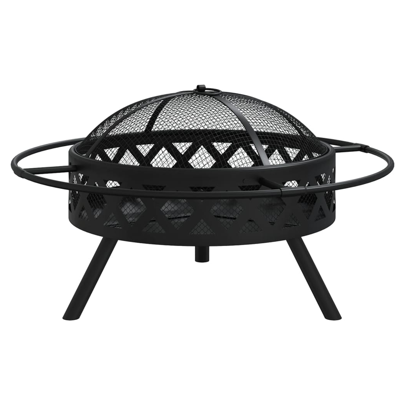 This fire pit is ideal for creating some extra warmth and a cosy atmosphere in your garden or on the patio. Strong material: Steel is an exceptionally hard and strong material. It offers sturdiness and stability. Made of steel, the heater is excellent in absorbing and radiating heat. Practical design: Featuring a large and deep bowl, this fireplace allows for a large fire for you and your family to enjoy for hours. Additionally, there is a convenient ring in the mesh cover so that you can carry it easily. Safe accessories: The mesh allows you to watch the burning fire, and encloses the fire for safety as well as preventing sparks and debris from flying out. Also, the included metal poker can be used for both removing the mesh cover and rearranging the logs. Note: It can only be used outdoors. Do not touch the product when there is still burning wood inside or short after it.