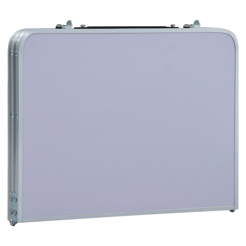 No matter where you are or where you intend on going, our folding camping table is great for any outdoor activities, such as backyard BBQ, sporting event, hiking, tailgating, picnic, etc. Made of lightweight aluminium and MDF tabletop, this table is easy to tote around, simple to set up and cleans off quickly. The robust frame and top make this table sturdy and durable. Thanks to the folding design, this camping table is easy to transport and can be stored away quickly when not in use. The carrying handle makes it very easy to bring the table with you.