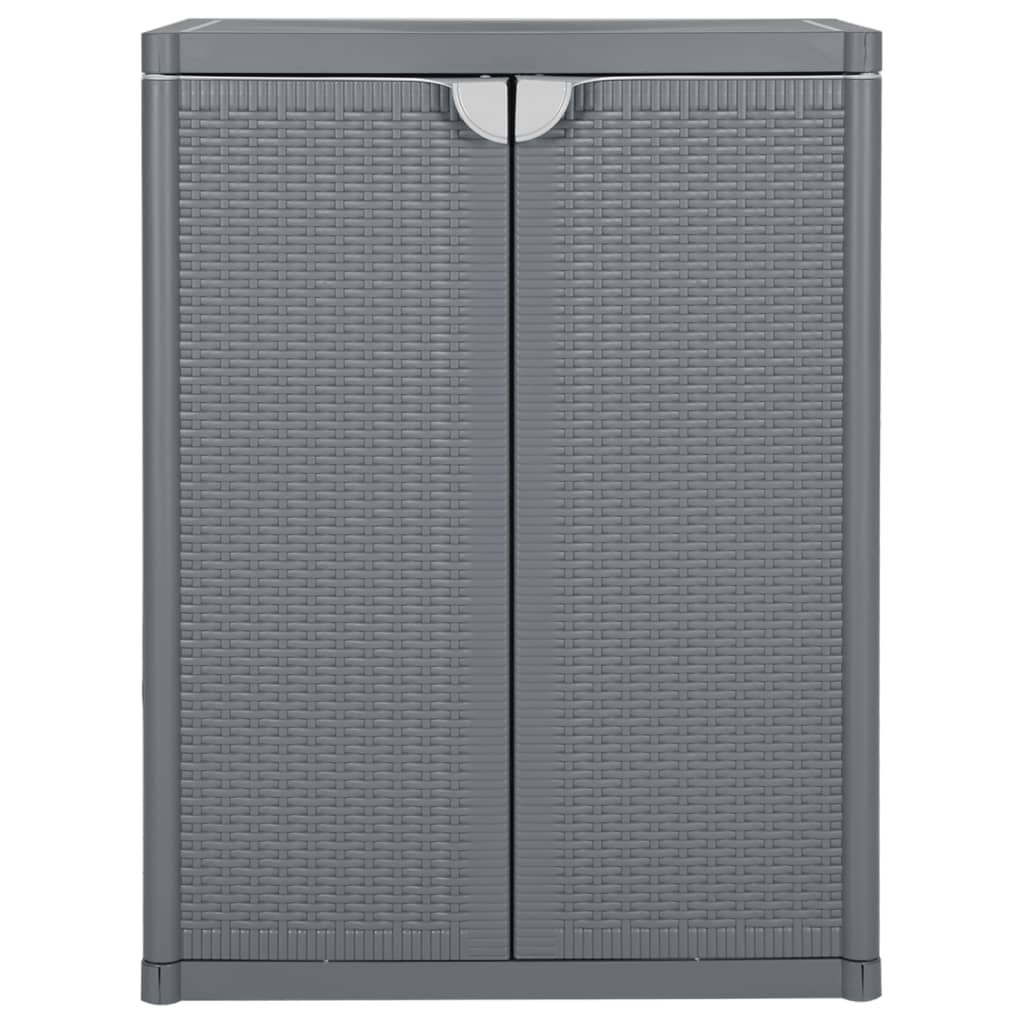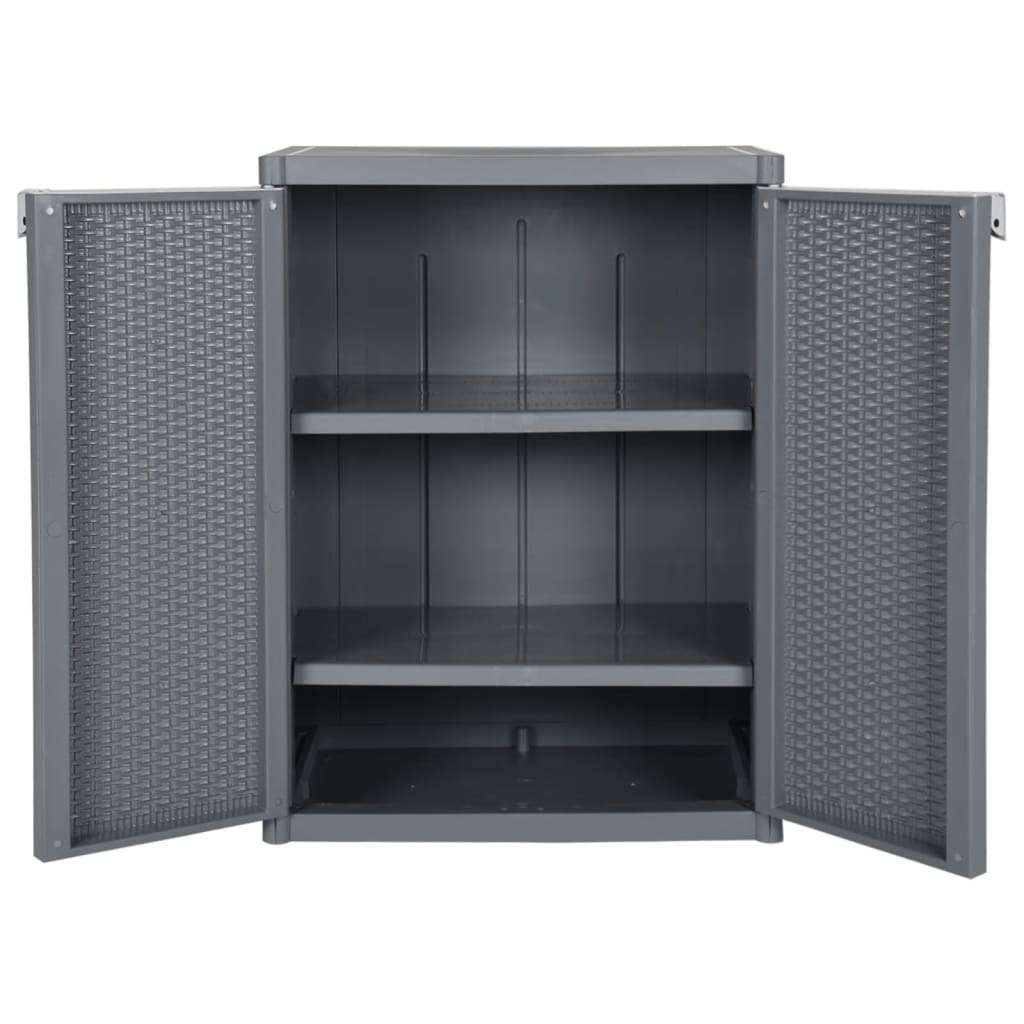 This garden storage cabinet featuring a practical design is a real eye-catcher for your home décor. Durable material: The cabinet is made of polypropylene. Polypropylene (PP) is a popular plastic that is also one of the most used materials in outdoor furniture. It’s lightweight, tough, and resistant to impact. Ample storage space: With 2 shelves, this sideboard cabinet provides ample space for organising and storing your essential items like tissues, laundry detergent, brushes, and more. Displaying function: The top of the cupboard is great for displaying your items or small plants. Handle design. The handles on the door allow the easy and quick opening of the storage cabinet. Good to know: To make assembly as easy as possible, each product is delivered with a manual. Warning: To prevent it being overturned, this product must be used with the wall attachment device (not provided).