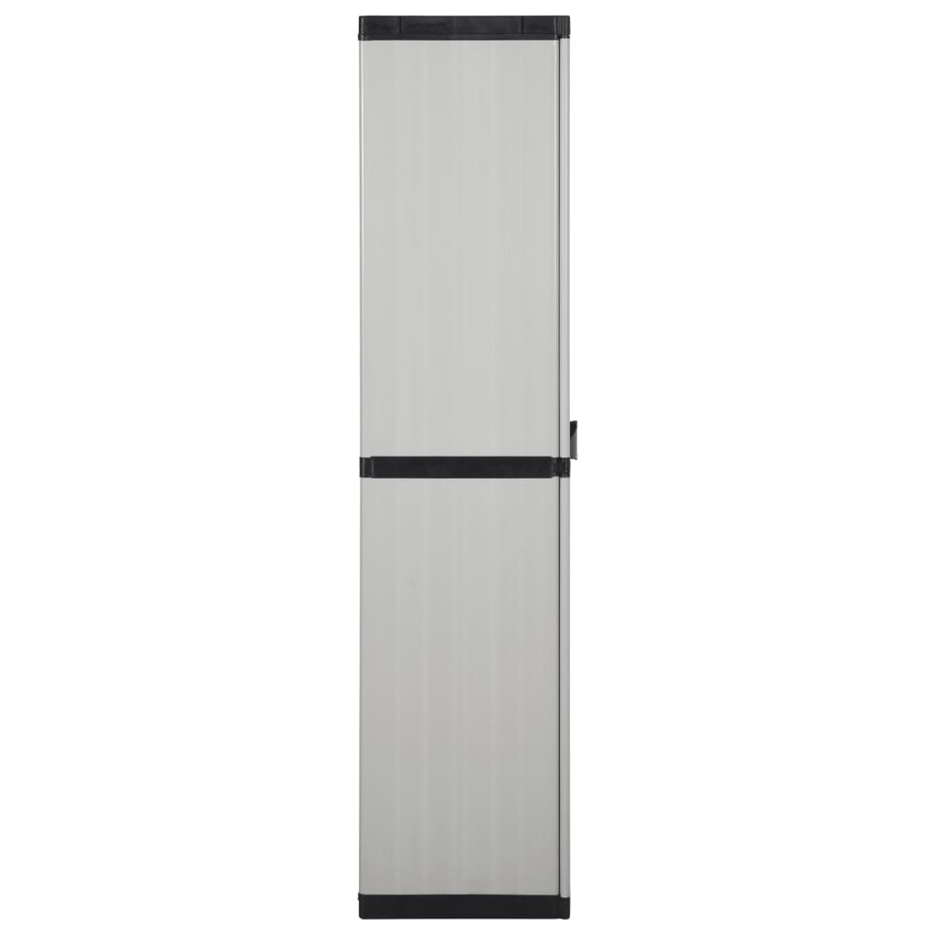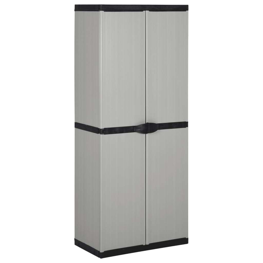 This storage cabinet blends into any décor with its timeless design. It is ideal for using in the garden or on the patio, etc. This patio cabinet is made of PVC and PP (Polypropylene), making it sturdy, durable and easy to clean. With 3 shelves, this balcony cabinet has ample storage space even for long or tall items like brooms and vacuum cleaner tubes, fishing rods etc. The outdoor cabinet can be locked with a padlock for added safety (the lock is not included). The garden cabinet has a compact design and will make the most use of limited space.