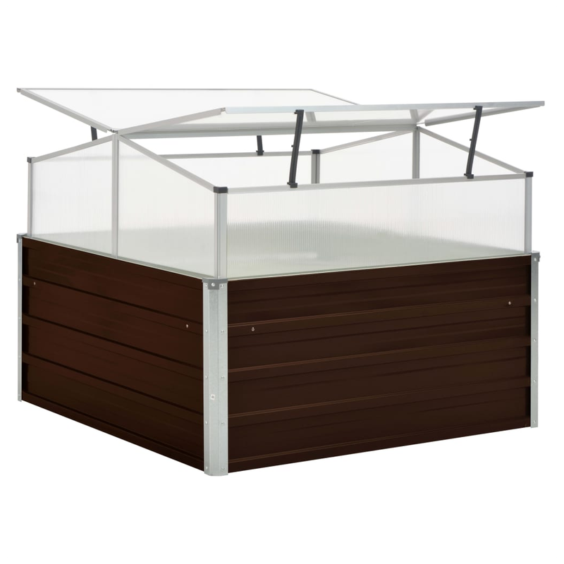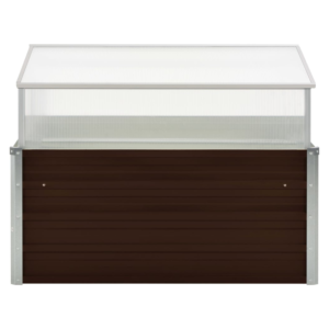 This spacious greenhouse can accommodate a considerable number of plants, which will be a great solution for protecting your plants from the cold weather. The top can be propped up for air circulation. Made of PC board and galvanised steel, this garden greenhouse is extremely durable and beautifully made. It is deep and wide enough to hold a large amount of soil, as well as provide ample space for your plants, vegetables, herbs and flowers. Thanks to its simple square design, it will make a stylish addition to any balcony, deck or patio. Additionally, the rim of the planter base has an edge fold design so no dangerous sharp edges are exposed. The product is easy to assembly. Please note the roof of our greenhouse cannot withstand heavy snowfall.
