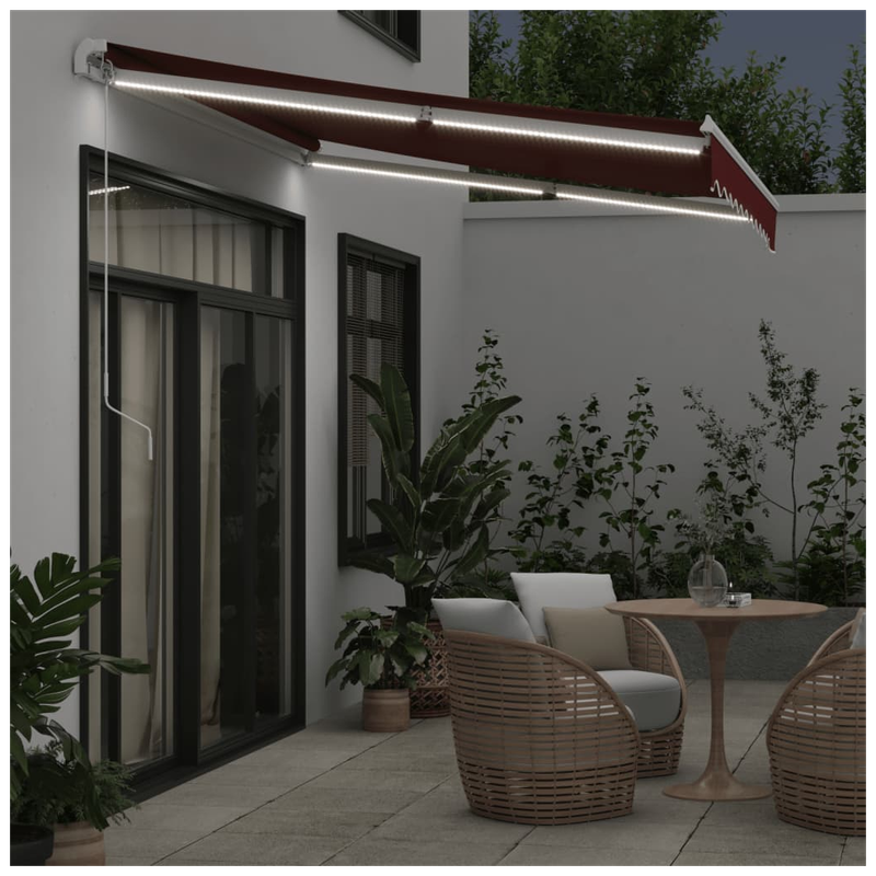 Create a nice and cool place on your patio and protect yourself from the UV rays with this retractable awning! Water-resistant and UV-resistant fabric: The awning fabric is made of high-density polyester with PU coating, which is water-resistant and anti-UV and fade-resistant. Easy to operate: The angle and height can be adjusted to meet your different needs. You can open and retract the awning smoothly via the long-hand crank. LED lights: The integrated LED lights of the awning illuminate your outdoor living space and create a cosy and romantic ambience when the sun goes down. Wide applications: The retractable awning features a simple, stylish design that will blend well with your home or commercial settings. It is suitable for a variety of places, such as balconies, patios, yards, restaurants, cafes, shops, and more.