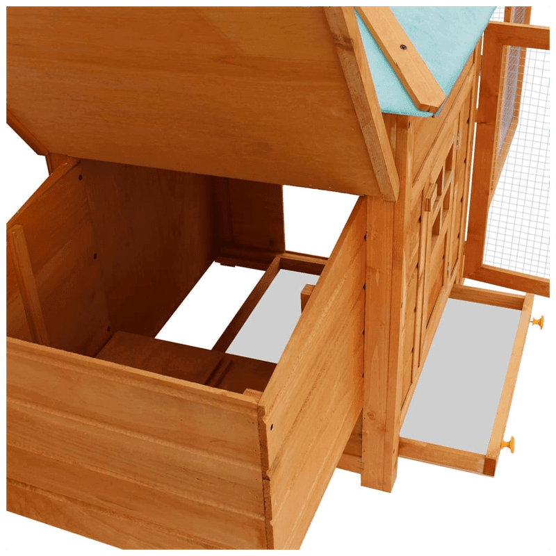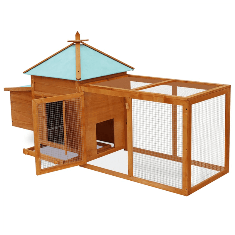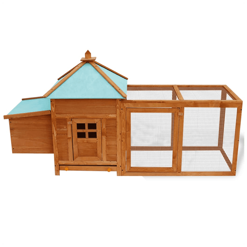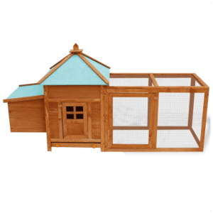 This high-quality deluxe chicken coop is suitable for keeping chickens, hens, ducks and many other small animals. It has a quality, comprehensive design with one house, one nesting box and a very large run with iron mesh, which allows you to keep an eye on your poultry. The house is made of premium treated wood that’s painted to hold up in an outdoor environment. The green water-proof fabric on the top keeps rain away, creating a comfortable resting area inside the cubby. The house can be opened wide to allow in fresh air, and closed to create a warmer, controlled environment. This is a high-end chicken coop that will be great for your pets and look great in your yard.