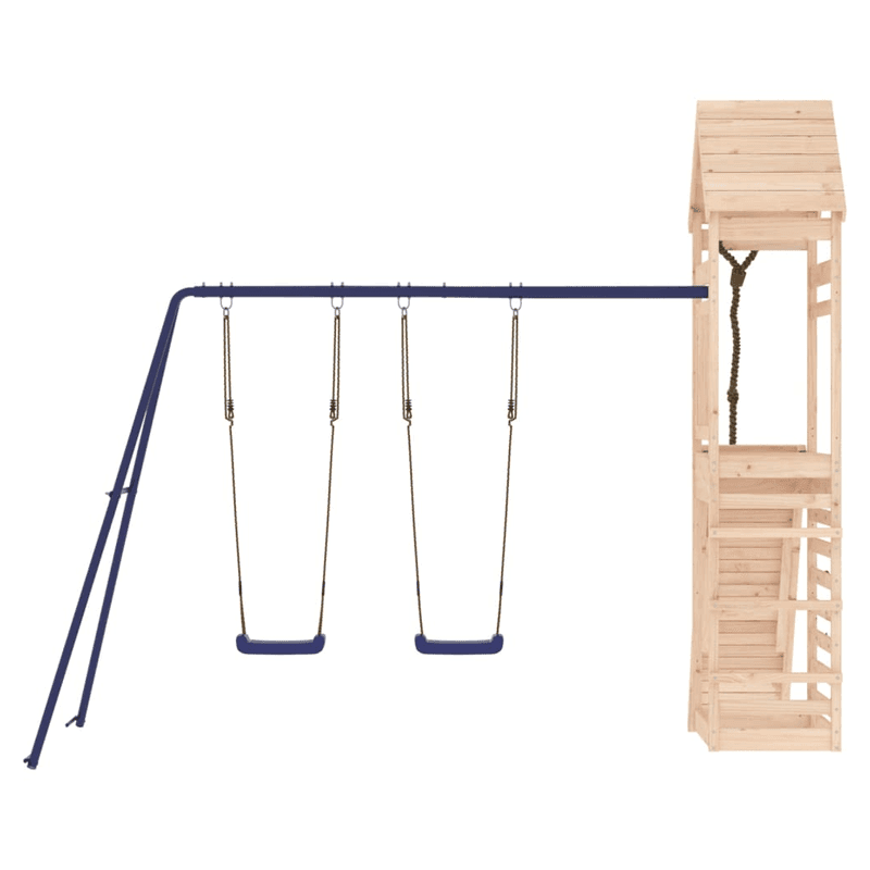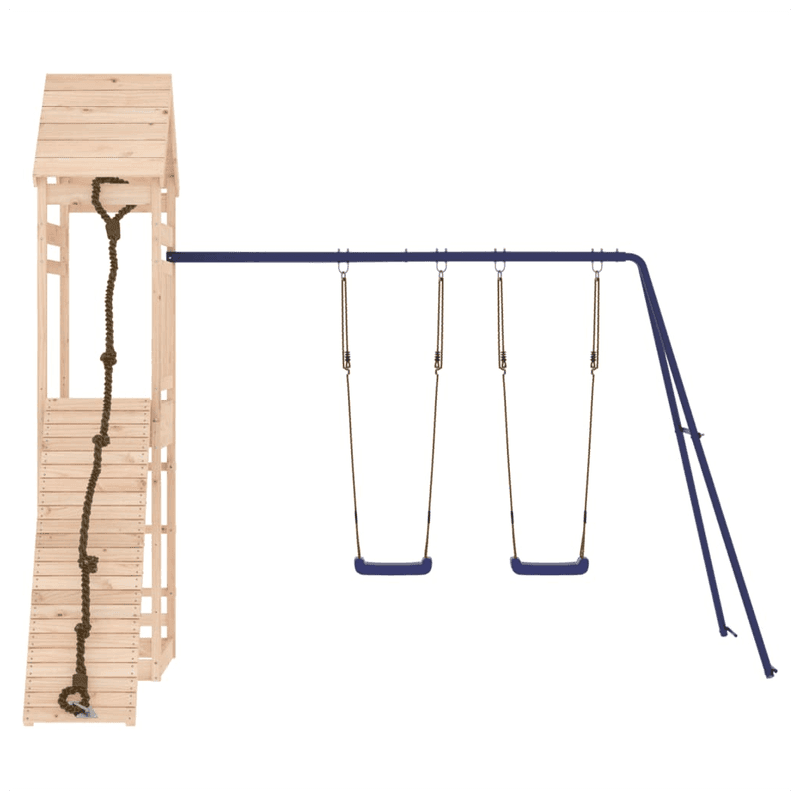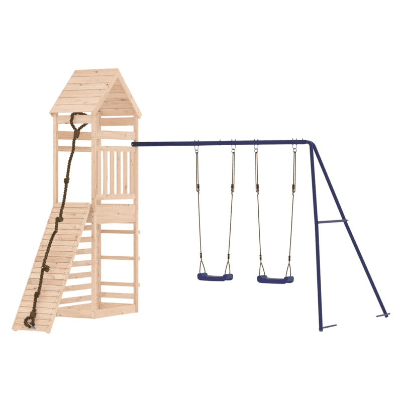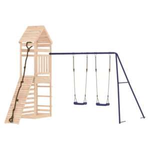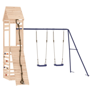 Do you want to give your children the freedom to play at home? This wooden outdoor playset transforms your backyard into a playground for imaginative adventures! Solid pine wood: This garden climbing frame is made of solid pine wood. Solid pine wood is a beautiful natural material. Pine wood has a straight grain, and the knots give the material its signature, rustic look. Sturdy and stable frame: The wooden frame of the playset ensures sturdiness and stability. In addition, the “A” shaped legs of the children’s swing allow for balance. Multi-activity centres: The climbing frame features a 90 cm height platform and stands out with its rock wall, a climbing wall with a rope, a double swing set as well as a sandpit. Your little ones can also invite their friends to join the fun. Thoughtful design: The surrounding wooden railings are designed to ensure the safety of children during their happy play. Also, the wooden roof provides shade for your children on hot summer days. Endless fun: This fun-filled garden playset is the perfect way for your children and their friends to enjoy entertainment, have more interactive time and make memories for you and your children! Warning: Only for domestic use. Outdoor use. Not suitable for children under 3 years. Recommend user age: 3-8 years old Maximum per user weight: 45 kg Note: The product shall be anchored in order to reduce tipping hazards. The anchors are not included. Good to know: To make assembly as easy as possible, each product is delivered with a manual.