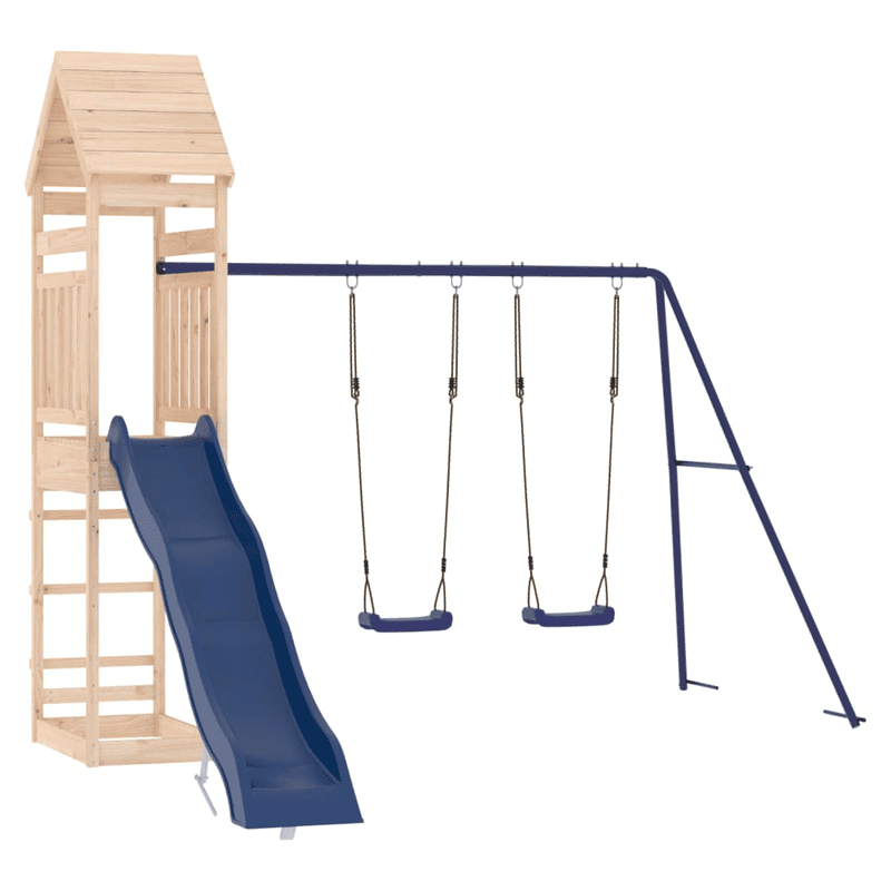 Do you want to give your children the freedom to play at home? This wooden outdoor playset transforms your backyard into a playground for imaginative adventures! Solid pine wood: This garden climbing frame is made of solid pine wood. Solid pine wood is a beautiful natural material. Pine wood has a straight grain, and the knots give the material its signature, rustic look. Sturdy and stable frame: The wooden frame of the playset ensures sturdiness and stability. In addition, the “A” shaped legs of the children’s swing allow for balance. Multi-activity centres: The climbing frame features a 90 cm height platform and stands out with its wave slide, a double swing set as well as a sandpit. Your little ones can also invite their friends to join the fun. Thoughtful design: The surrounding wooden railings are designed to ensure the safety of children during their happy play. Also, the wooden roof provides shade for your children on hot summer days. Endless fun: This fun-filled garden playset is the perfect way for your children and their friends to enjoy entertainment, have more interactive time and make memories for you and your children! Warning: Only for domestic use. Outdoor use. Not suitable for children under 3 year. Recommend user age: 3-8 years old Maximum per user weight: 45 kg. Note: The product shall be anchored in order to reduce tipping hazards. The anchors are not included. Good to know: To make assembly as easy as possible, each product is delivered with a manual.