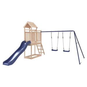 Do you want to give your children the freedom to play at home? This wooden outdoor playset transforms your backyard into a playground for imaginative adventures! Durable material: This climbing frame with slide is made of solid pine wood. Solid pine wood is a beautiful natural material. Pine wood has a straight grain, and the knots give the material its signature, rustic look. Sturdy and stable frame: The wooden frame of the garden climbing frame ensures sturdiness and stability. In addition, the “A” shaped legs of the children’s swing allow for balance. Multi-activity centres: The climbing frame features a 90 cm height platform and stands out with its wave slide, a double swing set, a ladder as well as a sandpit. Your little ones can also invite their friends to join the fun. Thoughtful design: The surrounding wooden railings are designed to ensure the safety of children during their happy play. Also, the wooden roof provides shade for your children on hot summer days. Endless fun: This fun-filled wooden outdoor playhouse is the perfect way for your children and their friends to enjoy entertainment, have more interactive time and make memories for you and your children! Warning: Only for domestic use. Outdoor use Not suitable for children under 3 years Recommend user age: 3-8 years old Maximum per user weight: 45 kg. Note: The product shall be anchored in order to reduce tipping hazards. The anchors are not included. Good to know: To make assembly as easy as possible, each product is delivered with a manual.