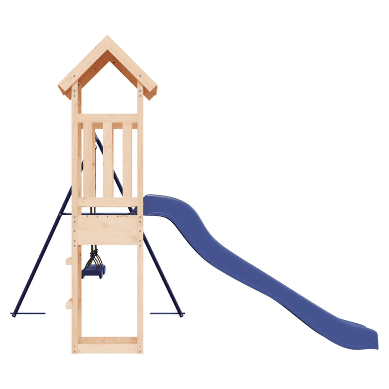 Do you want to give your children the freedom to play at home? This wooden outdoor playset transforms your backyard into a playground for imaginative adventures! Durable material: This playhouse is made of solid pine wood. Solid pine wood is a beautiful natural material. Pine wood has a straight grain, and the knots give the material its signature, rustic look. Sturdy and stable frame: The wooden frame ensures sturdiness and stability. In addition, the “A” shaped legs of the children’s swing allow for balance. Multi-activity centres: The climbing frame features a 90 cm height platform and stands out with its wave slide, a double swing set as well as a sandpit. Your little ones can also invite their friends to join the fun. Thoughtful design: The surrounding wooden railings are designed to ensure the safety of children during their happy play. Also, the wooden roof provides shade for your children on hot summer days. Endless fun: This fun-filled wooden outdoor playhouse is the perfect way for your child and their friends to enjoy entertainment, have more interactive time and make memories for you and your children! Warning: Only for domestic use. Outdoor use Not suitable for children under 3 years Recommend user age: 3-8 years old Maximum per user weight: 45 kg. Note: The product shall be anchored in order to reduce tipping hazards. The anchors are not included. Good to know: To make assembly as easy as possible, each product is delivered with a manual.