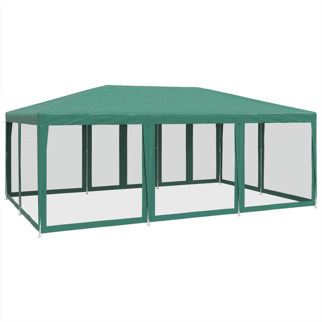 This super cool party tent, with a heavy-duty iron frame, a water-resistant roof and ten mesh sidewalls, is an ideal shelter from the sun. Premium material: This gazebo tent is made of high-density polyethene (HDPE) that protects you from direct sunlight and allows enough wind. The HDPE is specially treated, so it is water-resistant too. Iron frame: The iron frame of this garden tent ensures sturdiness and stability. Practical design: The tent has ten mesh side walls, which protect you from pesky insects. And one of the side walls has 2 zippers for entrance and easy access. Wide applications: This event tent is an ideal choice for a wide range of outdoor events, such as shows, weddings, parties, BBQs, festivals and so on. Good to know: This product should NEVER be used under bad weather, such as strong wind, heavy rain, snow, storm, etc.