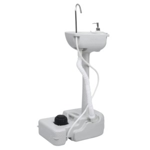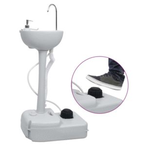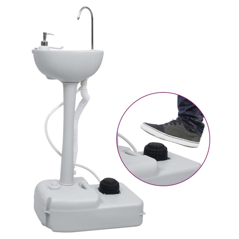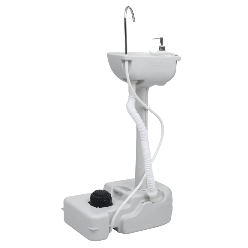 With its lightweight and compact design, this portable camping handwash stand and water tank set is perfect for camping, motorhome trip, food event, etc. Multifunctional handwash stand: The handwash station is fitted with a soap dispenser, a towel rack, and a freshwater tank to meet your different needs. It features a hands-free operation by stepping on the foot pump to provide a stream of water. Wheeled water tank: The water tank offers sufficient water storage for emergency use. Several water outlets allow water to flow in and out quickly. The top handle and wheels make it easily transported. Durable material: The camp set is made of strong high-density polyethylene, making it resistant to shock and impact for durability.